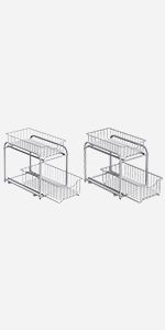 Sink Organizer - LUSLIA Sliding Basket Under Sink Organizer - Metallic Silver