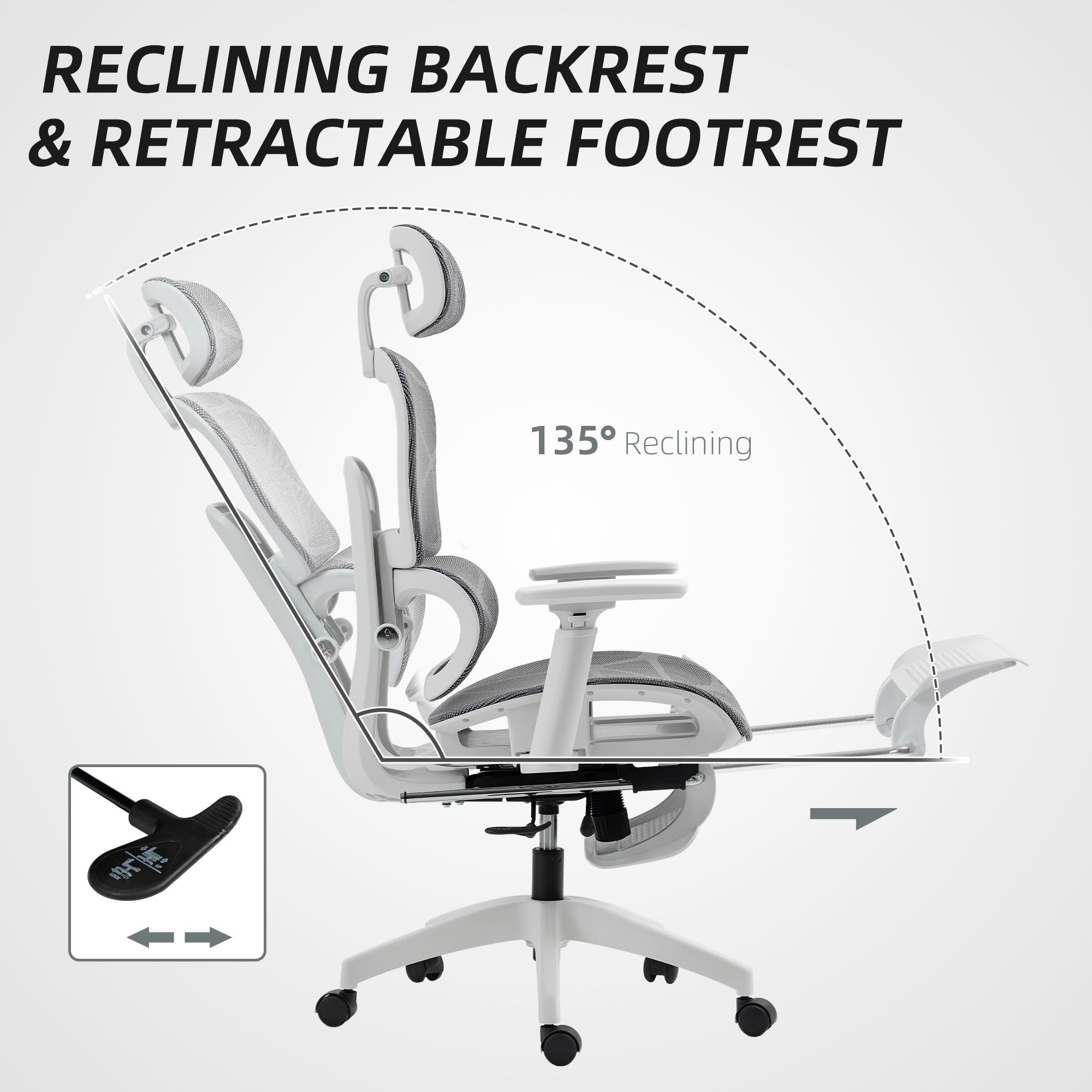 SIVAR Mesh Office Chair Multi Adjustable Task Chair - White and Grey