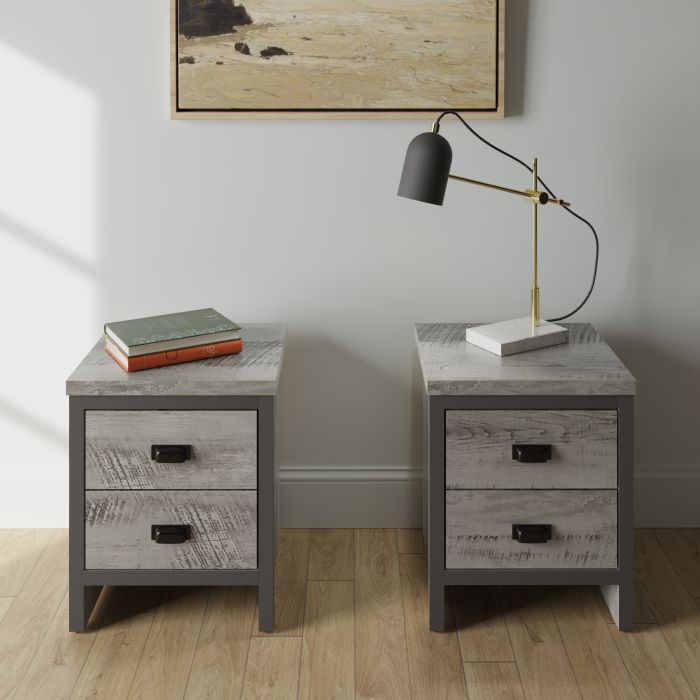 Bedside Table - SLATE 2 Drawer Nightstand Grey 30.5cm