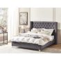 Slatted Bed Frame Grey Velvet Upholstered Tufted Headrest Nailhead Trim 6ft EU Super King Size Glam Design