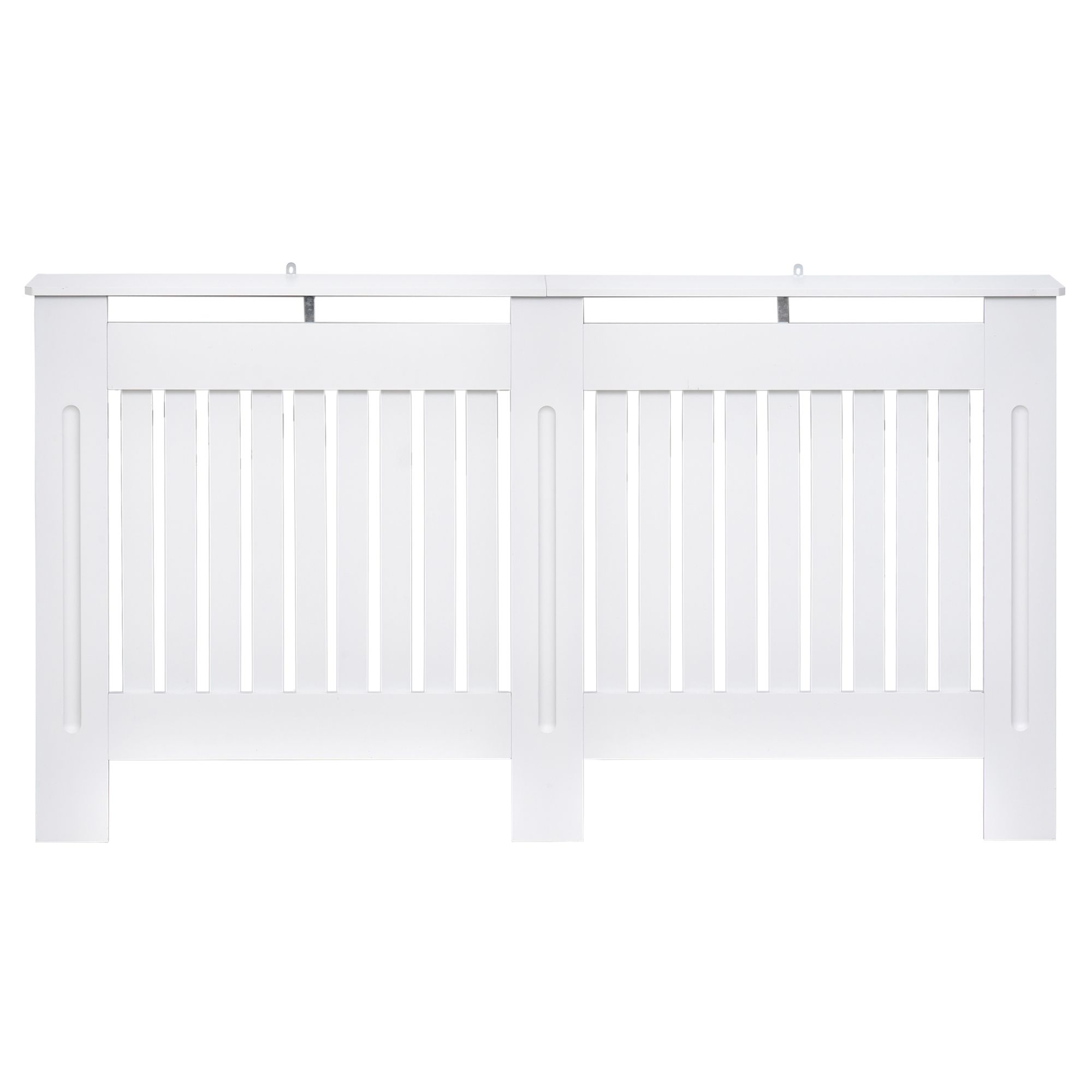 Slatted Radiator Cover Painted Cabinet MDF Lined Grill in White (152L x 19W x 81H cm)