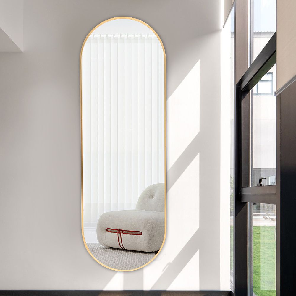Add a touch of glamour to your home with this stunning oval full length mirror . Featuring a sleek and sturdy metal frame in a luxurious gold finish, this mirror is both functional and stylish. Measuring 150cm in height and 50cm in width, it is the perfect size for checking your outfit from head to toe. Hang it in your bedroom, dressing room, or hallway to create a focal point and enhance the decor of any space.