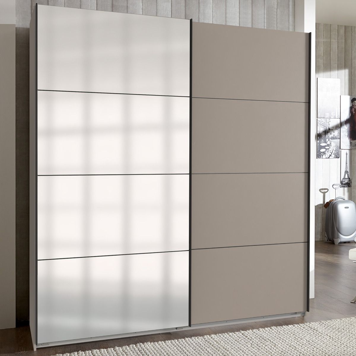 Sliding Wardrobe - ANVAST 2 Door Mirrored Wardrobe Grey 180cm