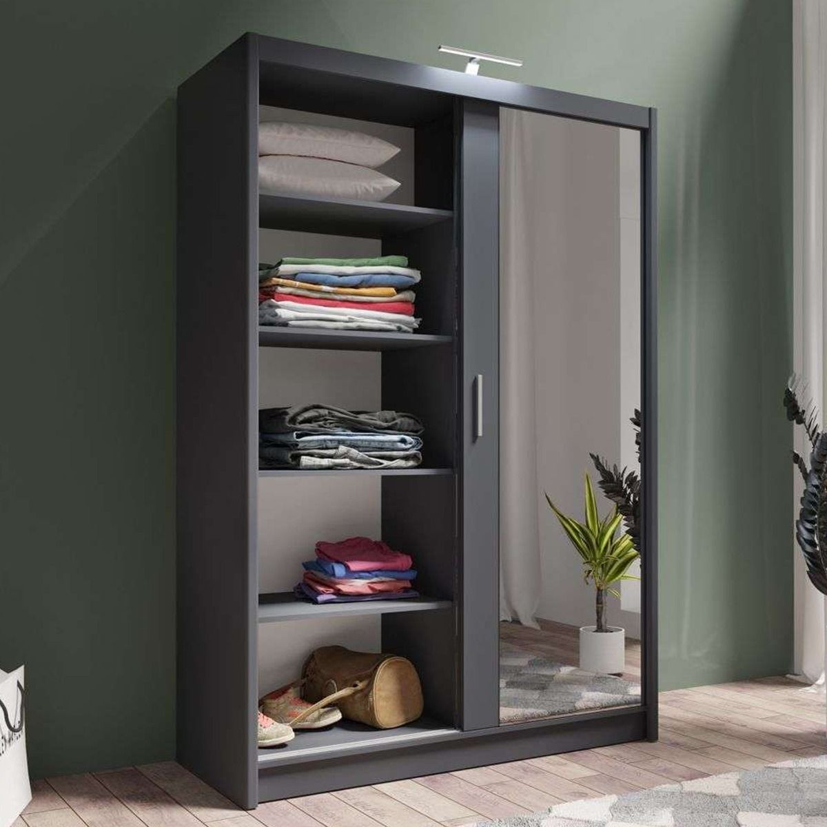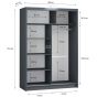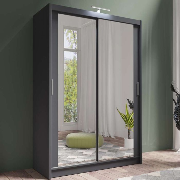 Sliding Wardrobe - AURORA 2 Door Full Mirrored Wardrobe Grey 150cm