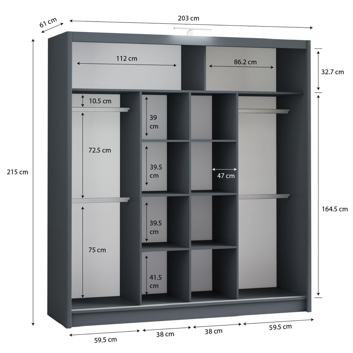 Sliding Wardrobe - AURORA 2 Door Full Mirrored Wardrobe Grey 203cm