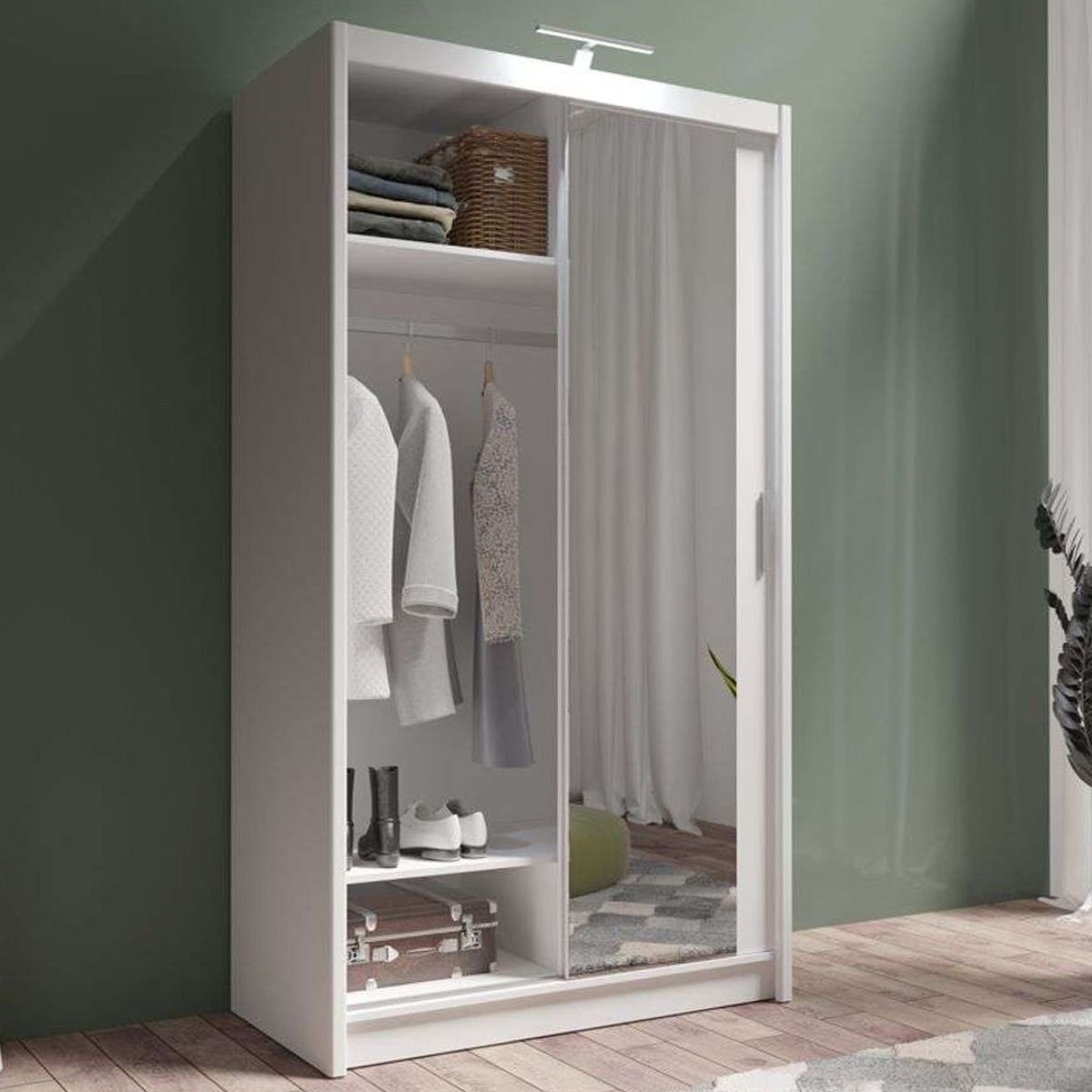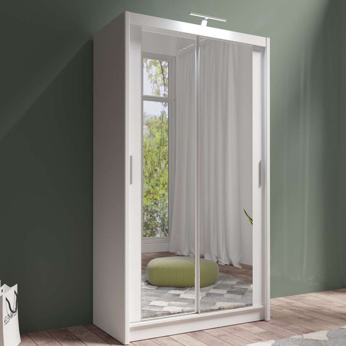 Sliding Wardrobe - AURORA 2 Door Full Mirrored Wardrobe White 120cm