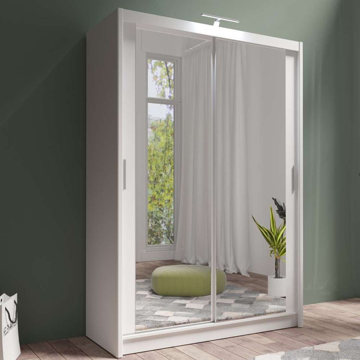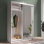 Sliding Wardrobe - AURORA 2 Door Full Mirrored Wardrobe White 150cm