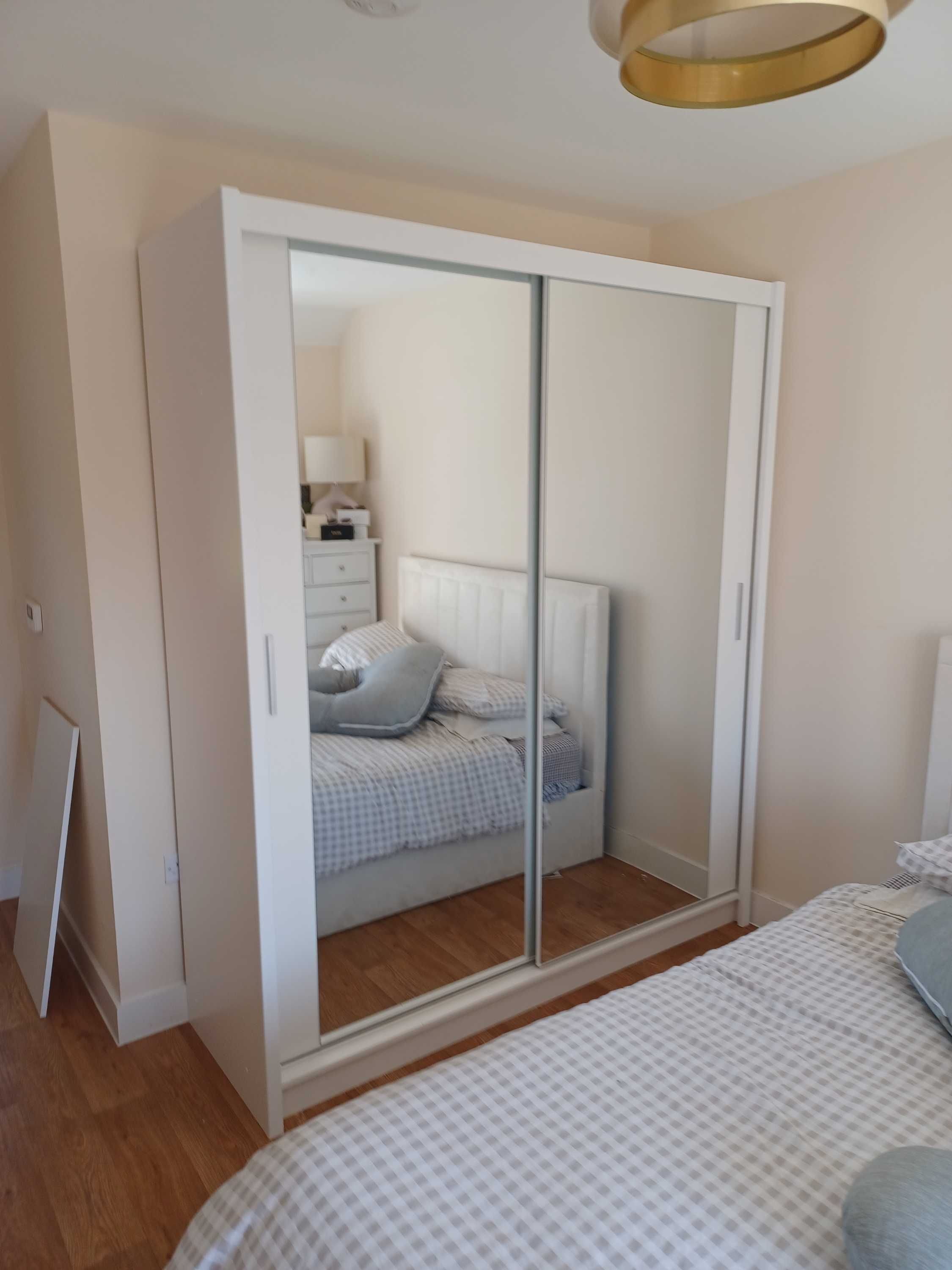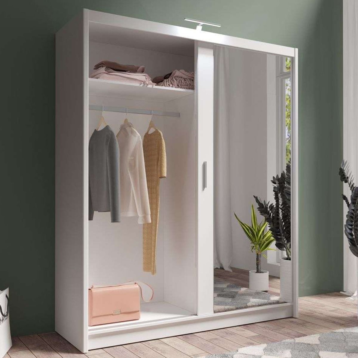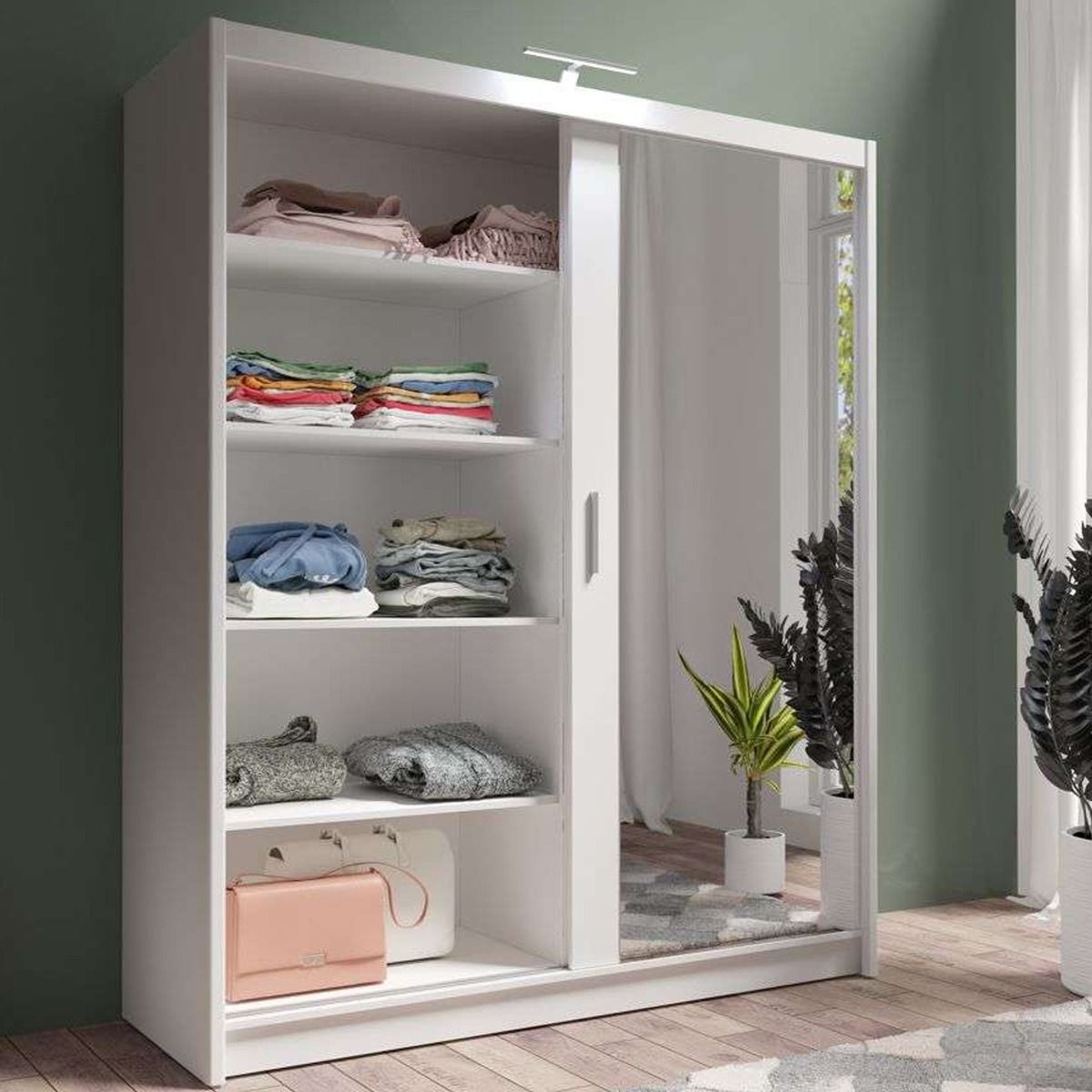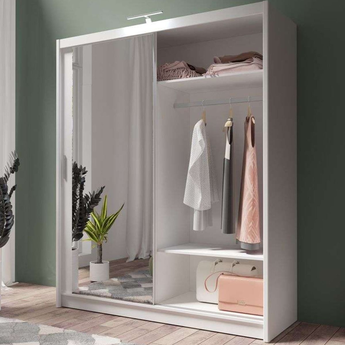 Sliding Wardrobe - AURORA 2 Door Full Mirrored Wardrobe White 180cm