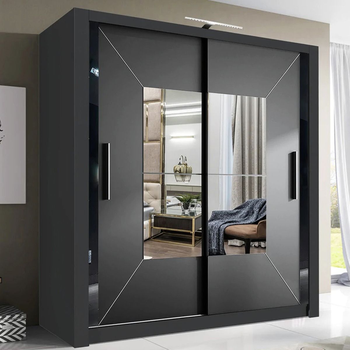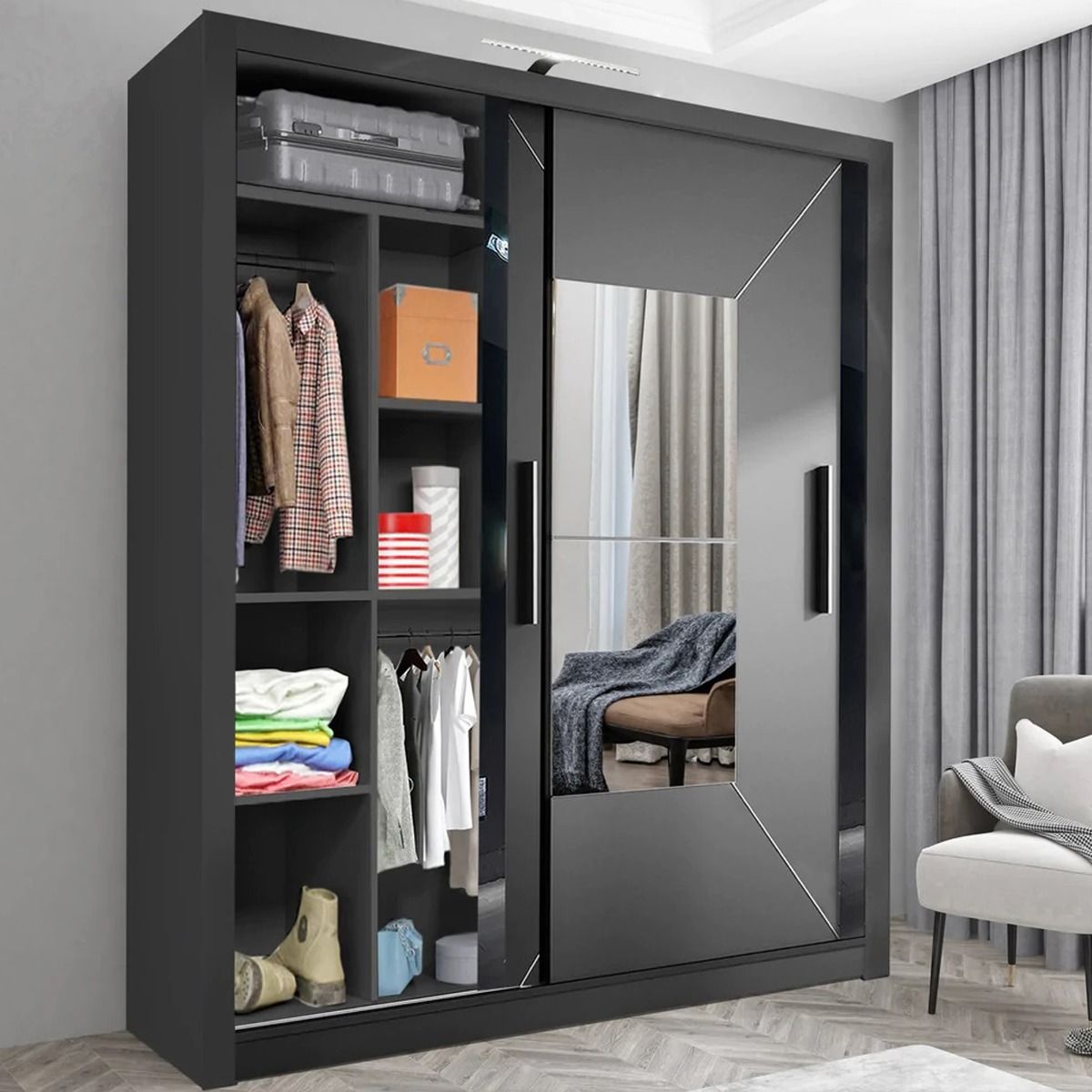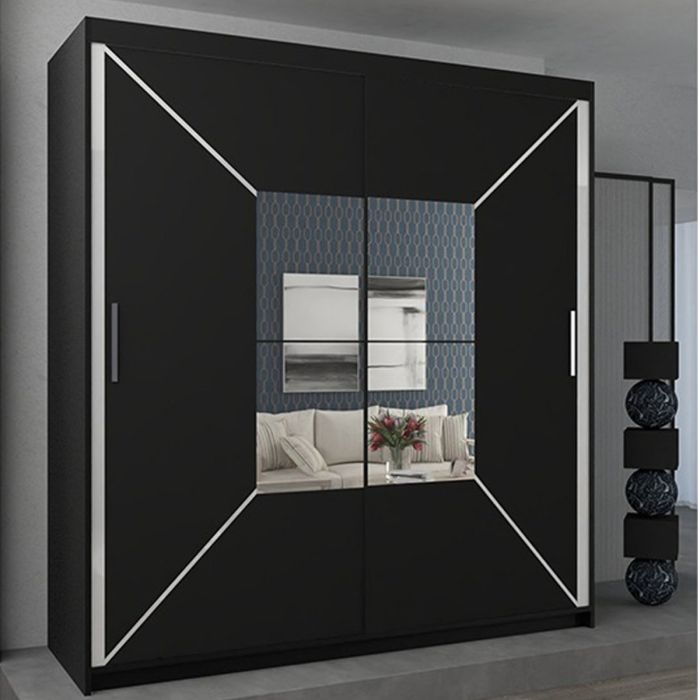 Sliding Wardrobe - BARTHOLOMEW 2 Door Mirrored Wardrobe 150cm - Black
