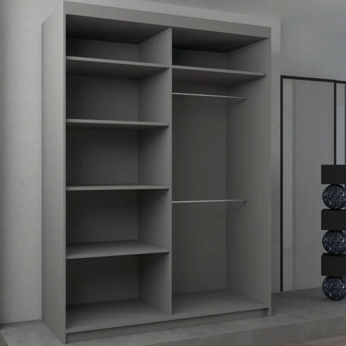 Sliding Wardrobe - BARTHOLOMEW 2 Door Mirrored Wardrobe 150cm - Grey