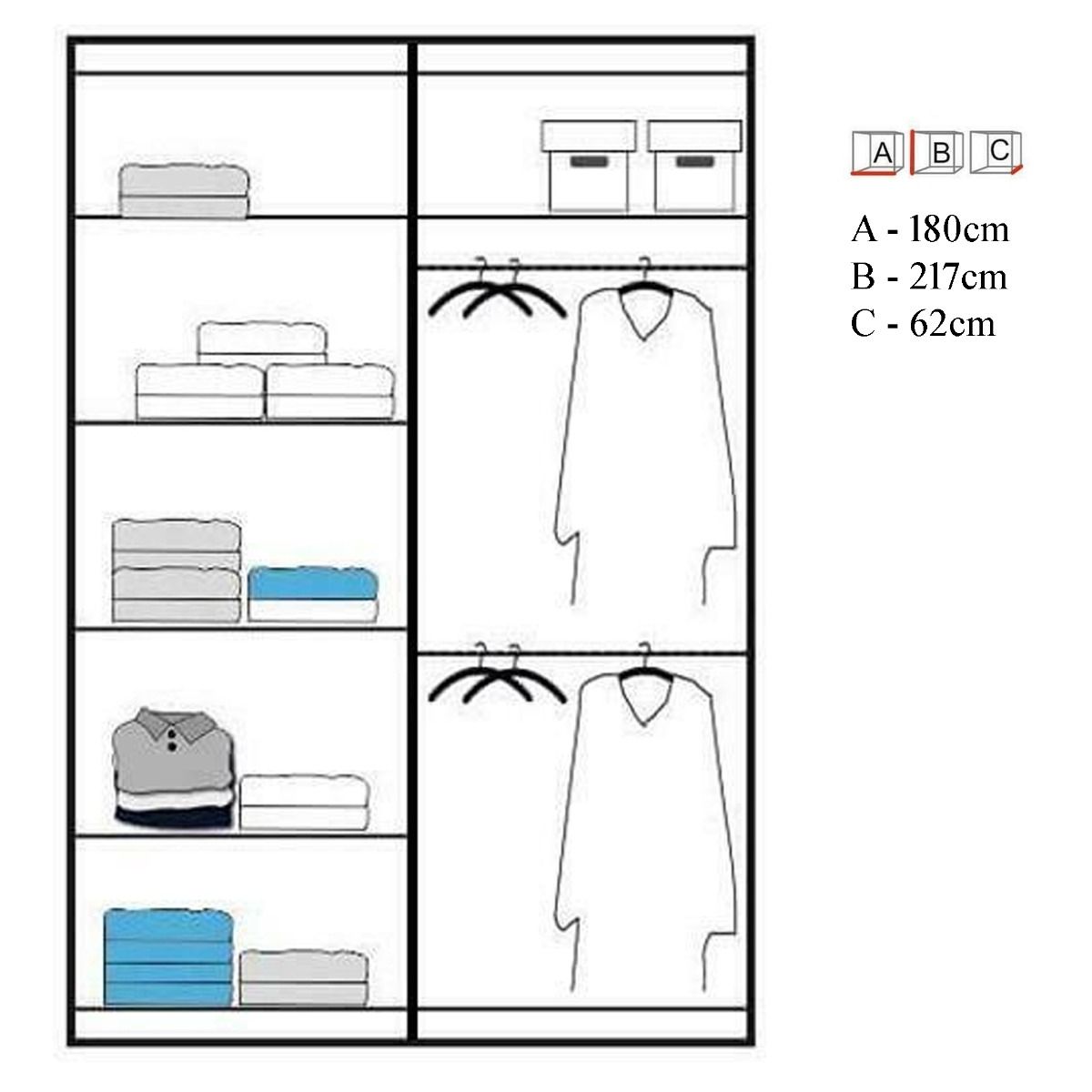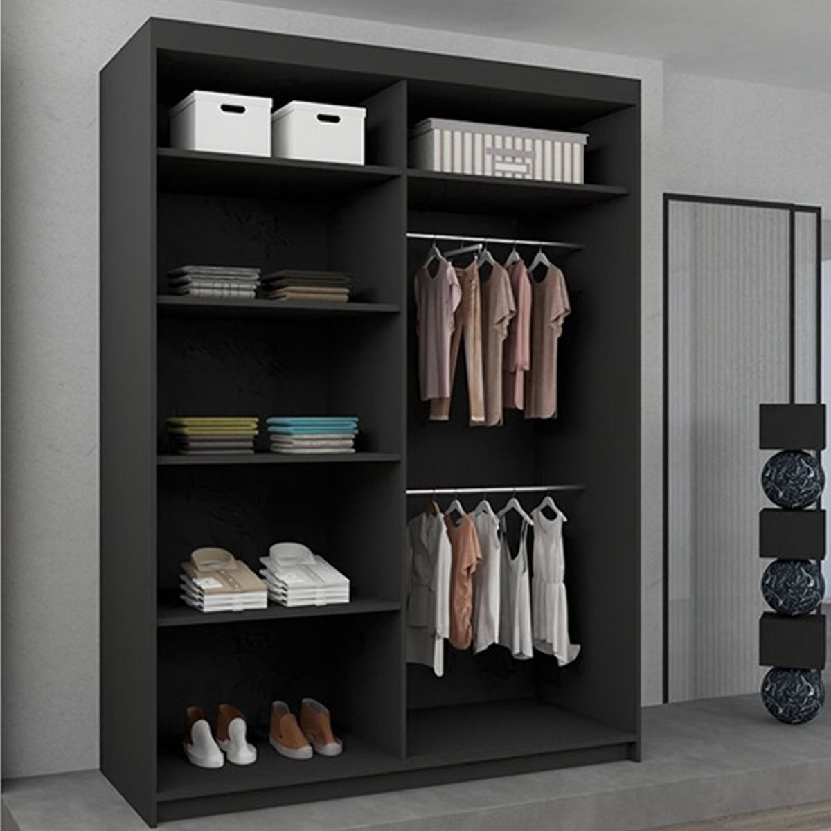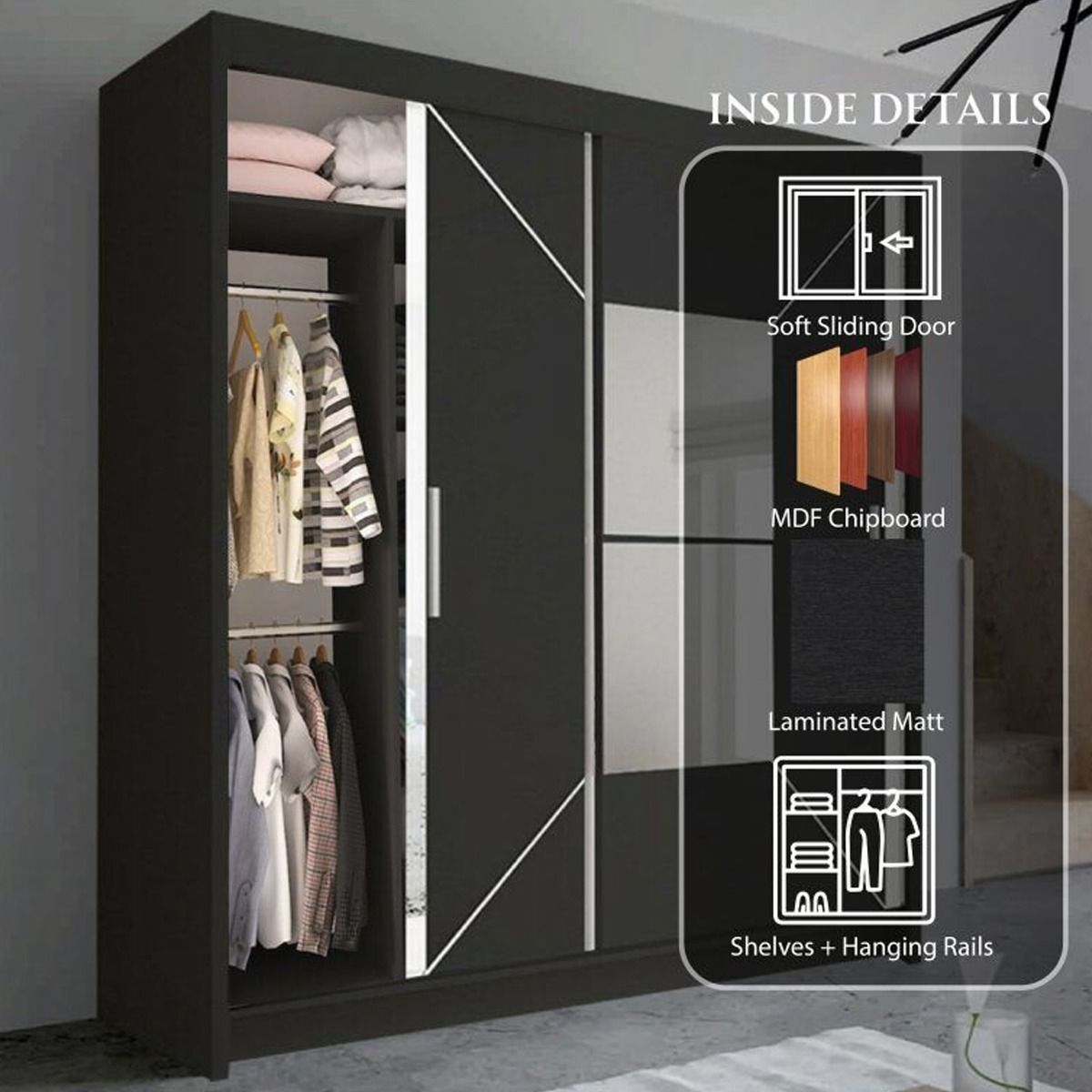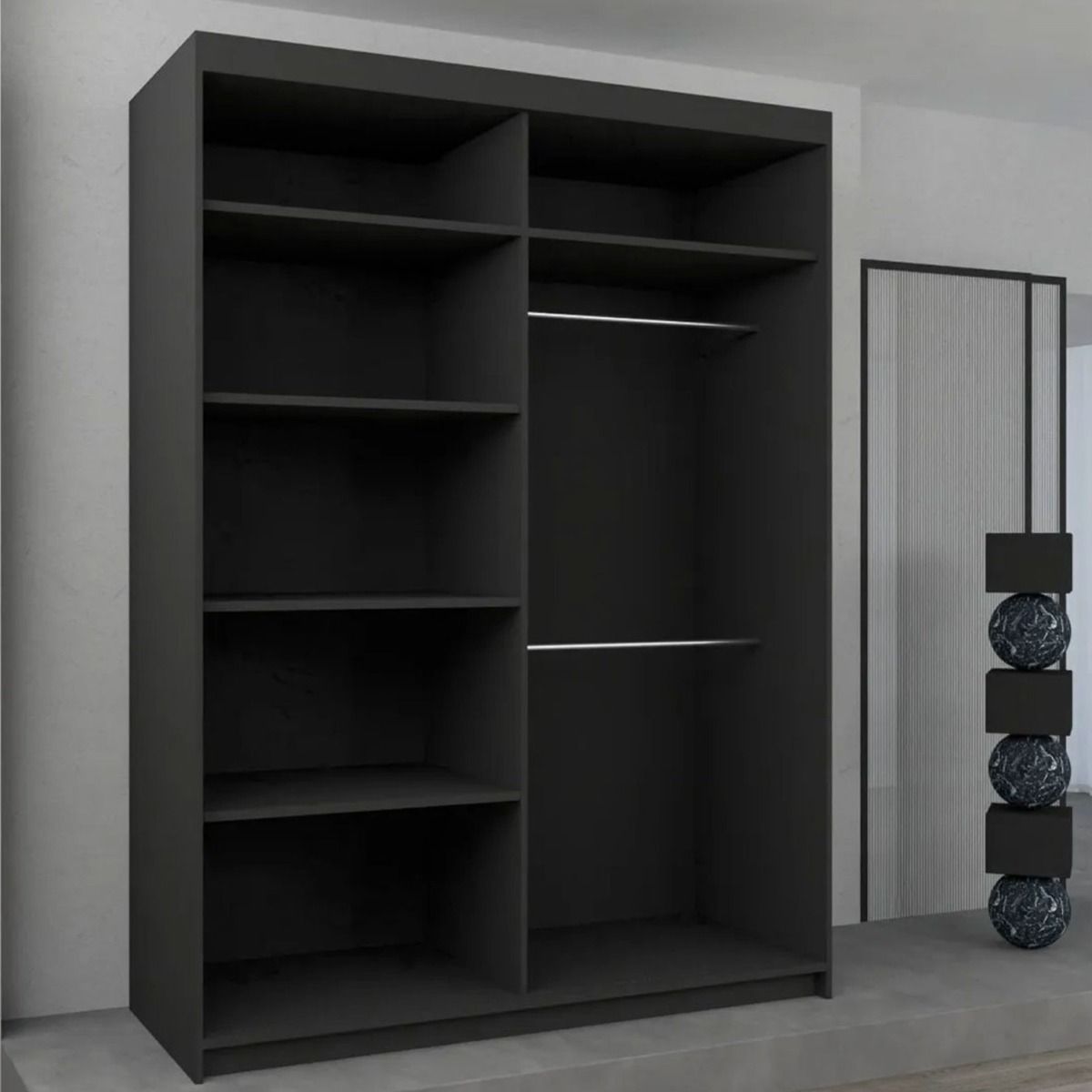 Sliding Wardrobe - BARTHOLOMEW 2 Door Mirrored Wardrobe Black 180cm