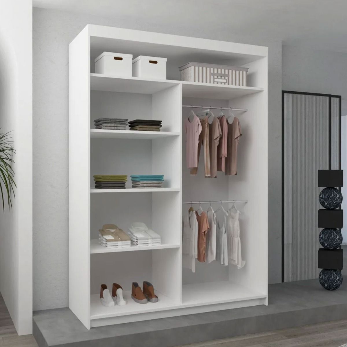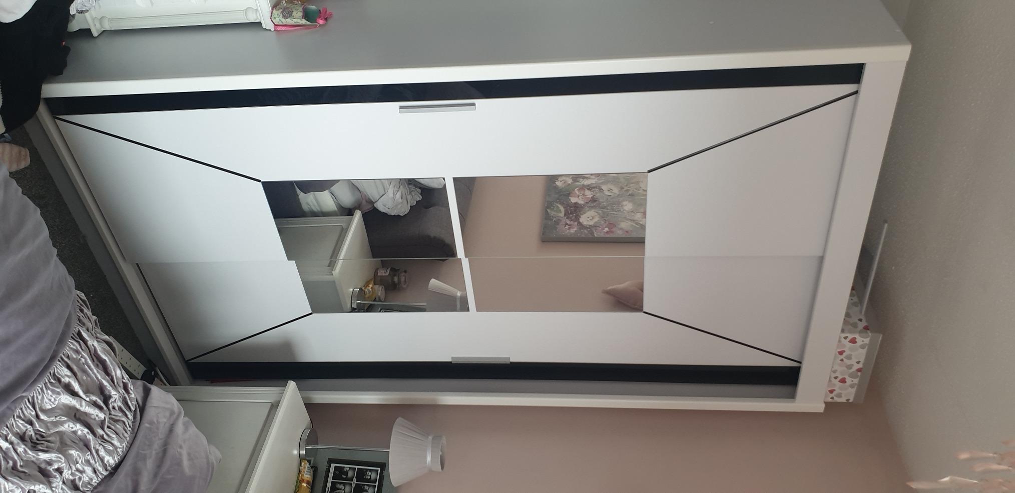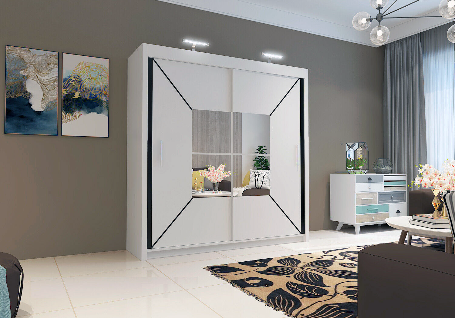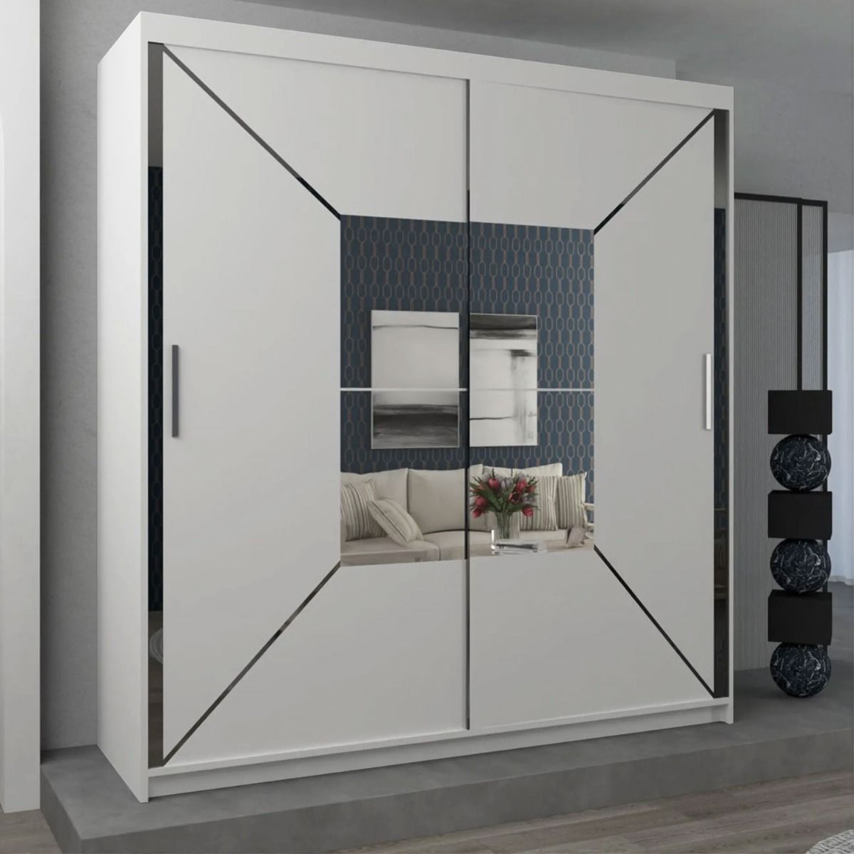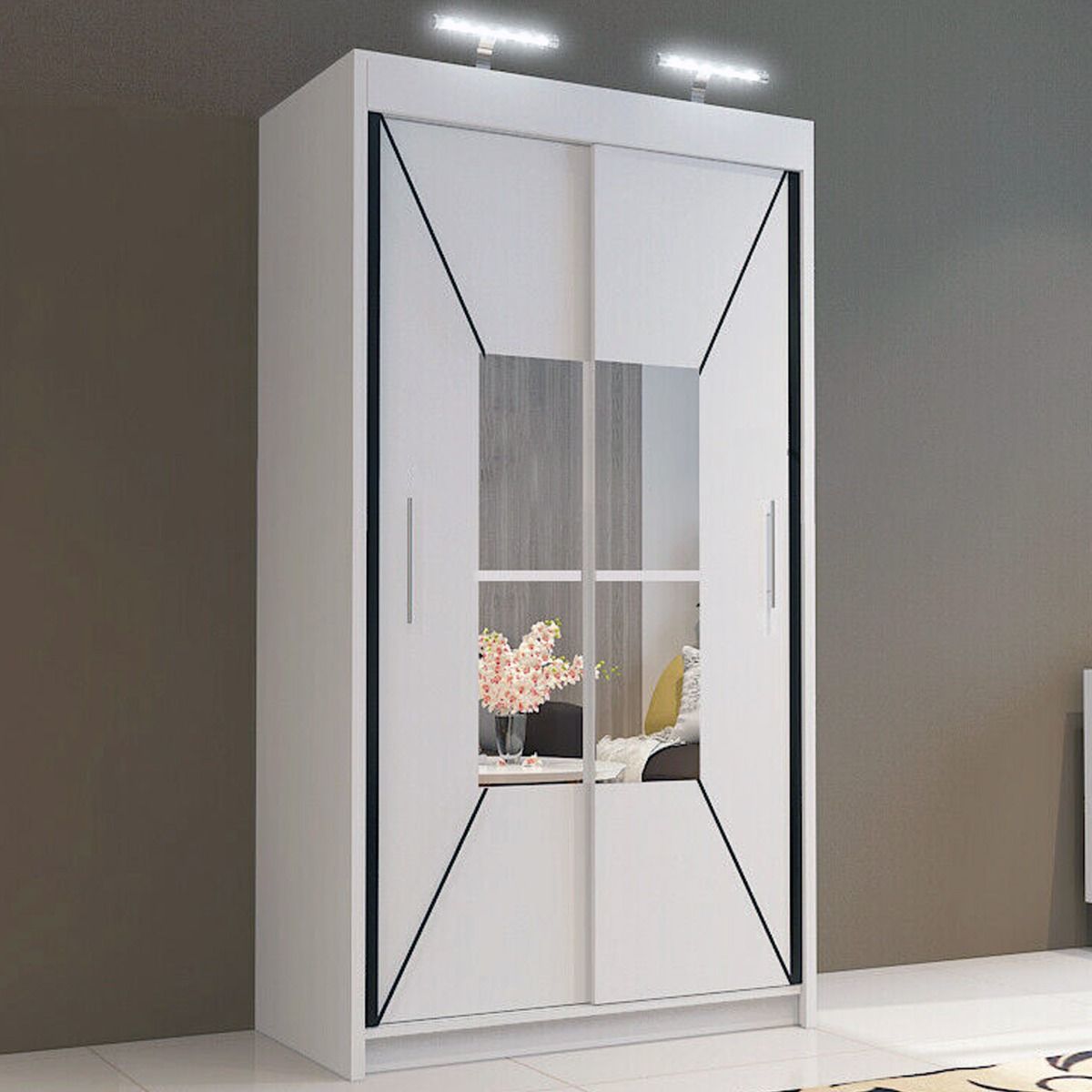 Sliding Wardrobe - BARTHOLOMEW 2 Door Mirrored Wardrobe White 120cm
