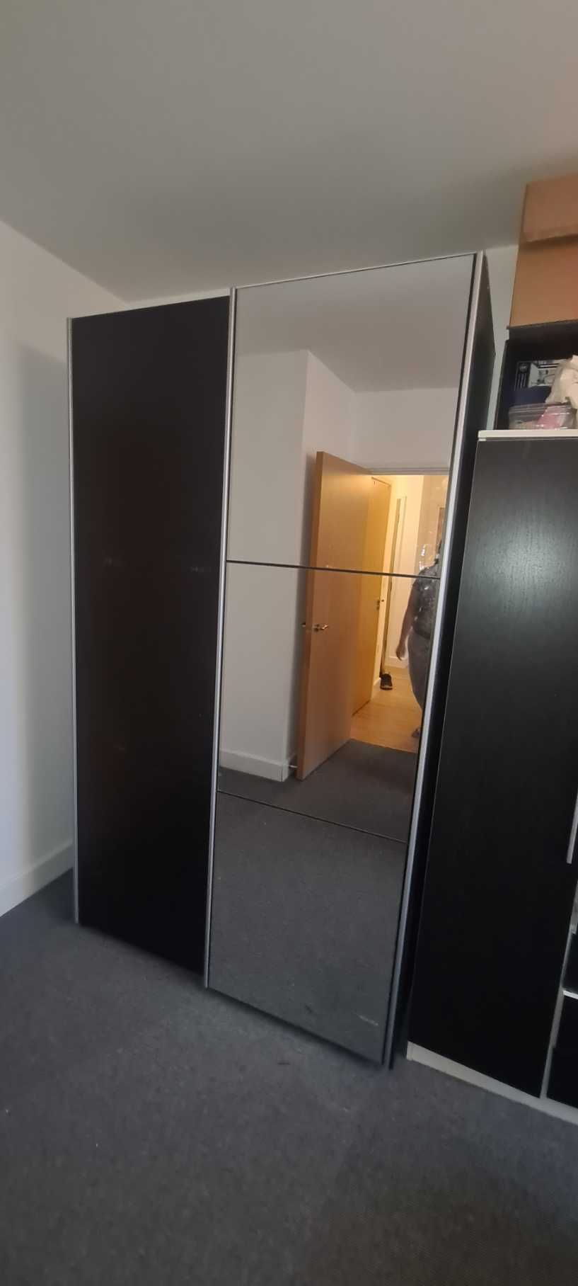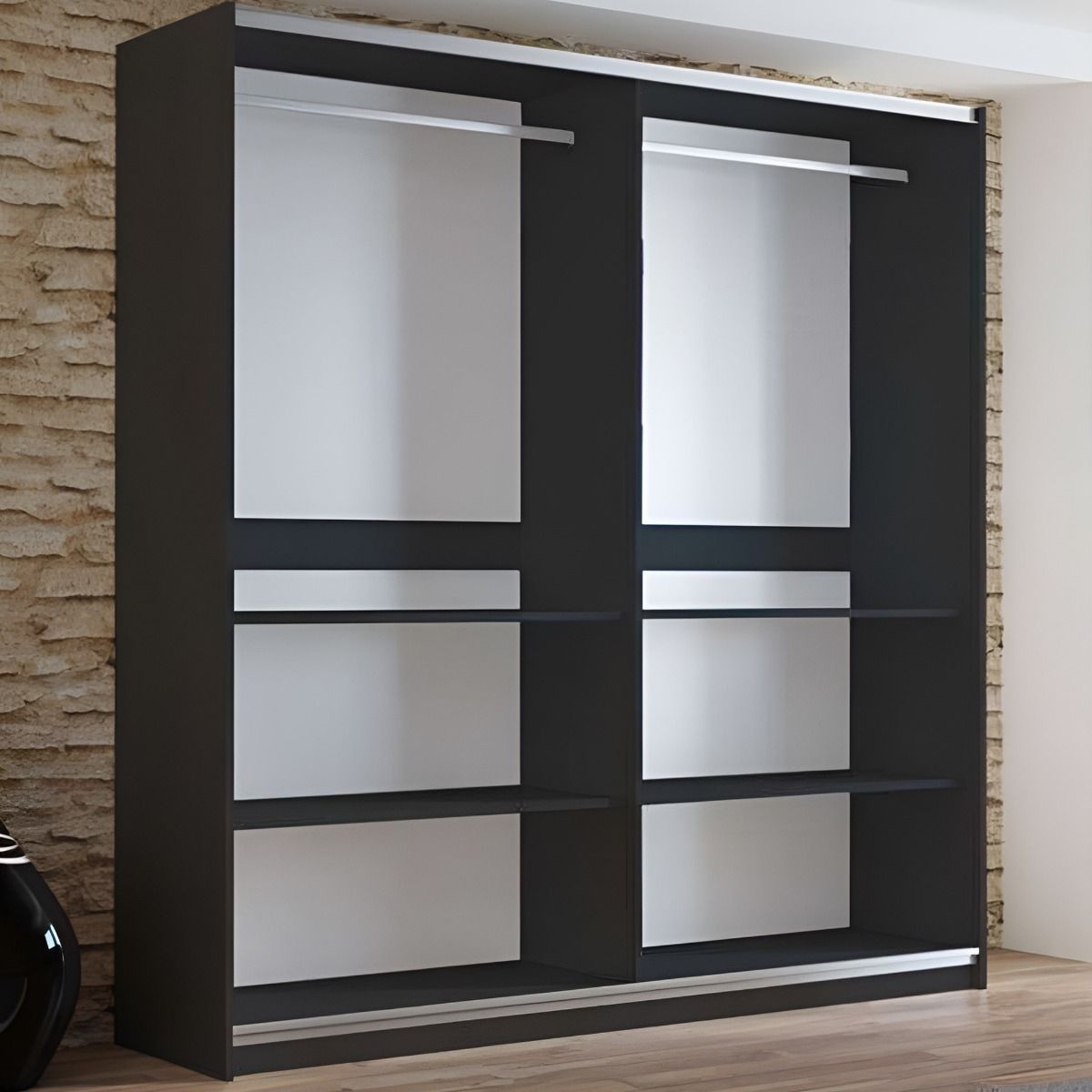 Sliding Wardrobe - BORIS 2 Door Mirrored Wardrobe Black 200cm