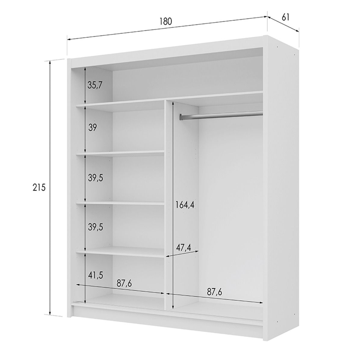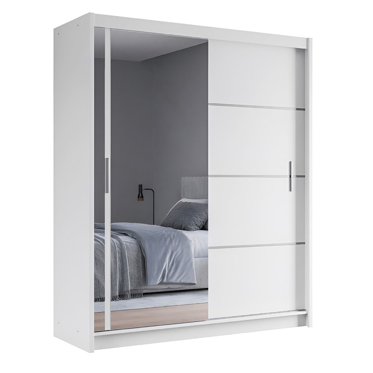 Sliding Wardrobe - BROADLAND 2 Door Mirrored Wardrobe White 180cm