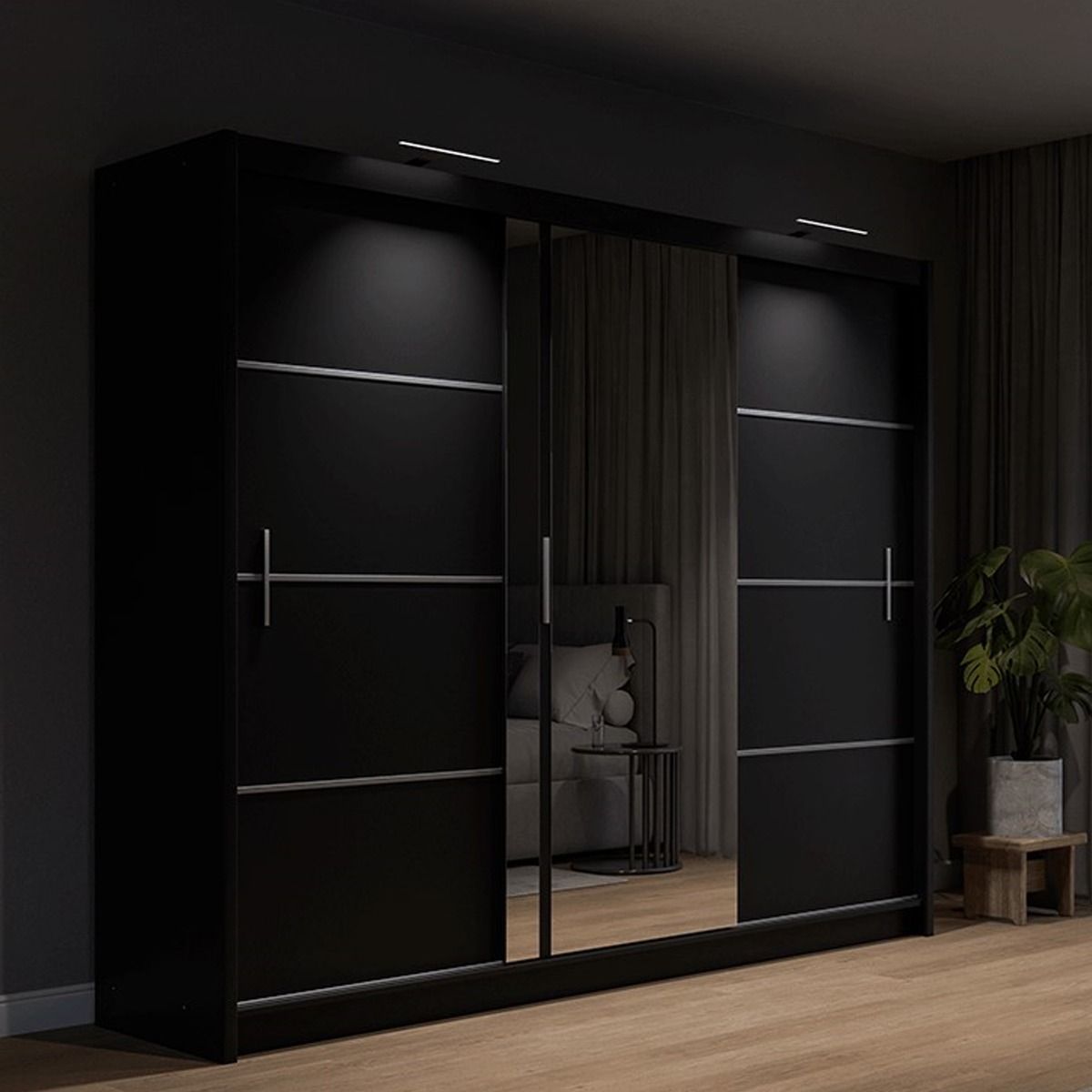Sliding Wardrobe - BROADLAND 3 Door Mirrored Wardrobe Black 250cm