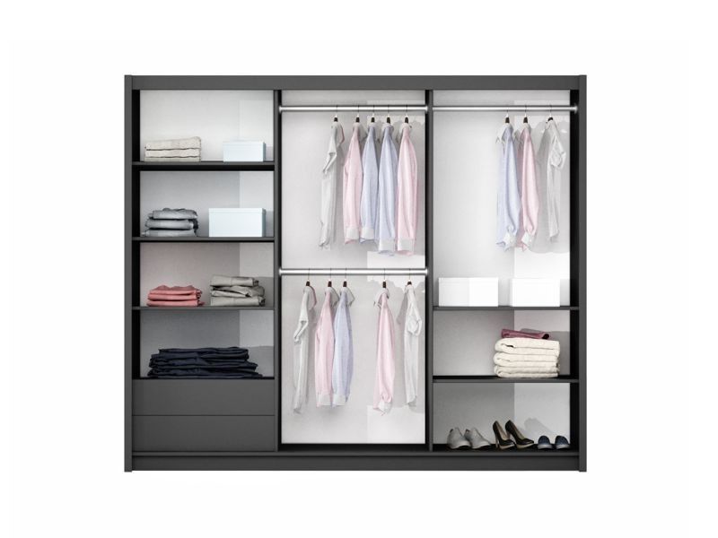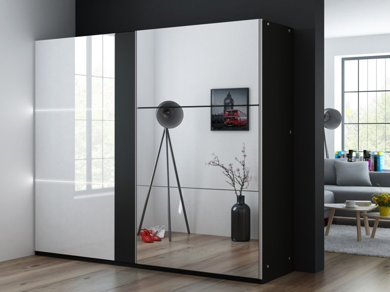 Sliding Wardrobe - CANTERBURY 2 Door Mirrored Wardrobe Black Grey - 200cm and 250cm