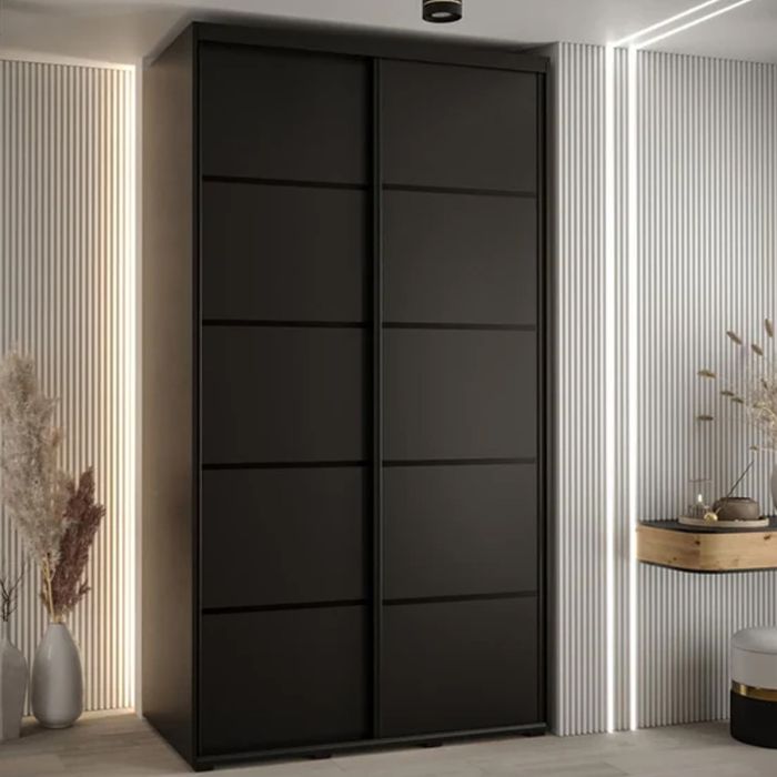 Sliding Wardrobe - CAVESSA 2 Door Wardrobe Black 140cm