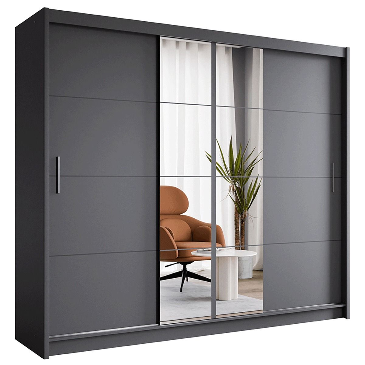 Sliding Wardrobe - CHARNWOOD II 2 Door Mirrored Wardrobe Graphite 250cm