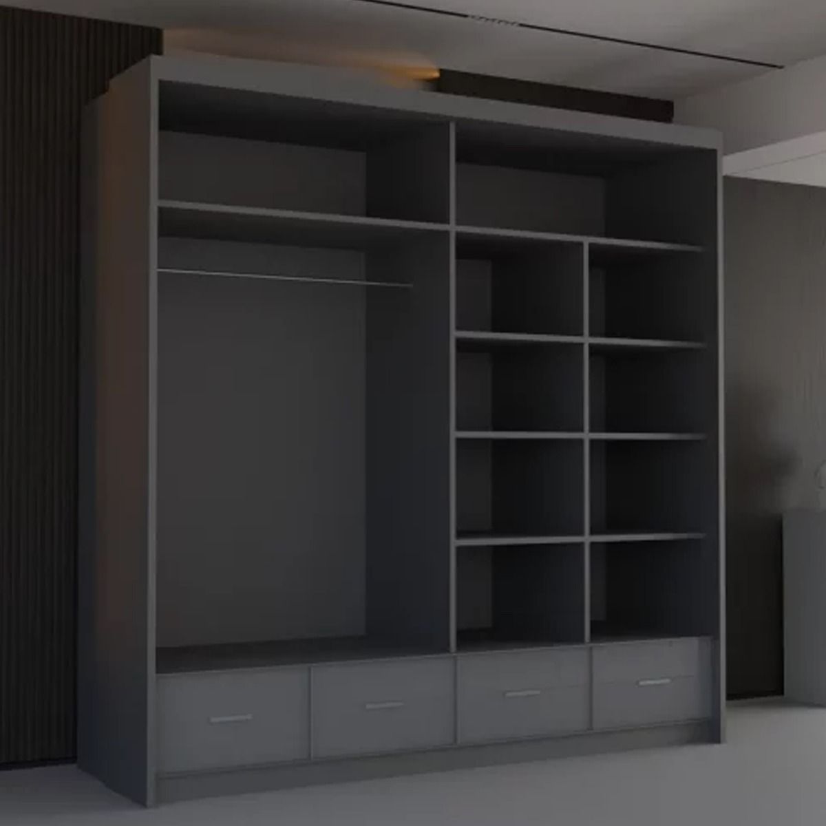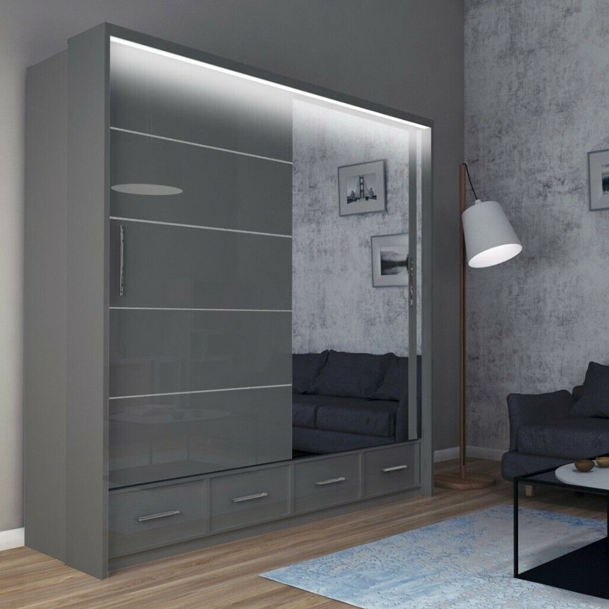 Sliding Wardrobe - CHESHAM 2 Door Mirrored Wardrobe Grey 208cm