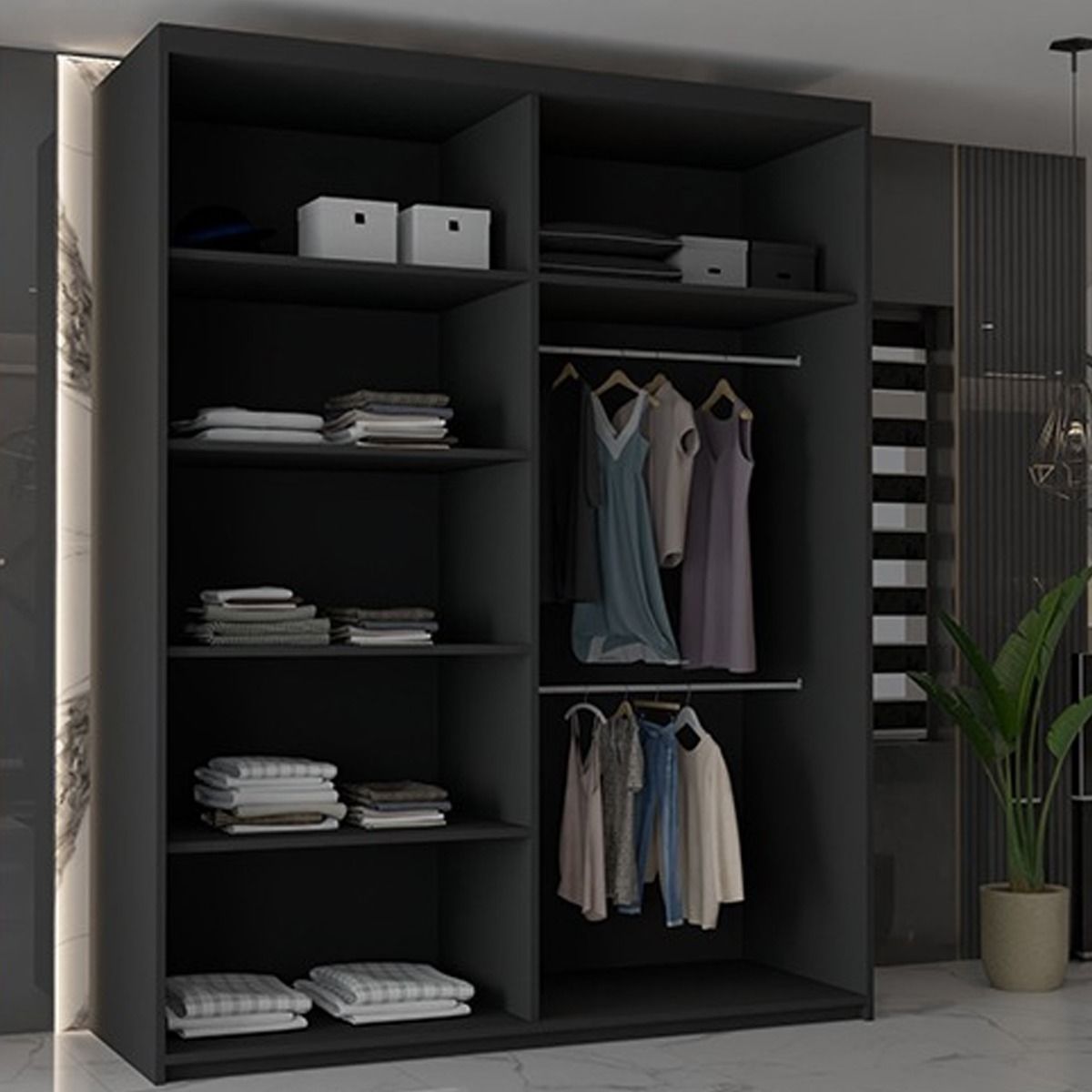 Sliding Wardrobe - CHICAGO II 2 Door Mirrored Wardrobe Black - 180cm
