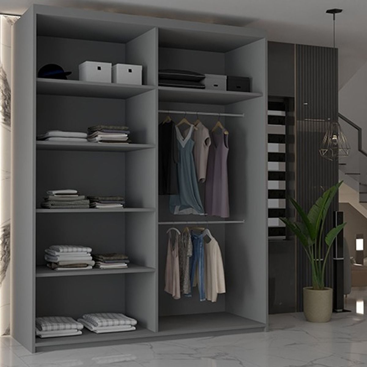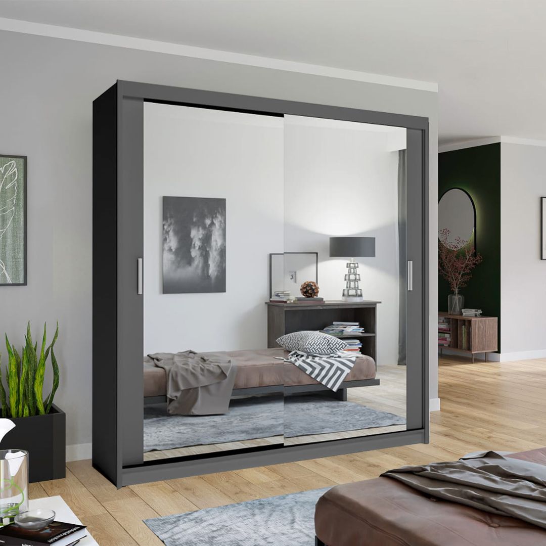 Sliding Wardrobe - CHICAGO II 2 Door Mirrored Wardrobe Grey - 150cm