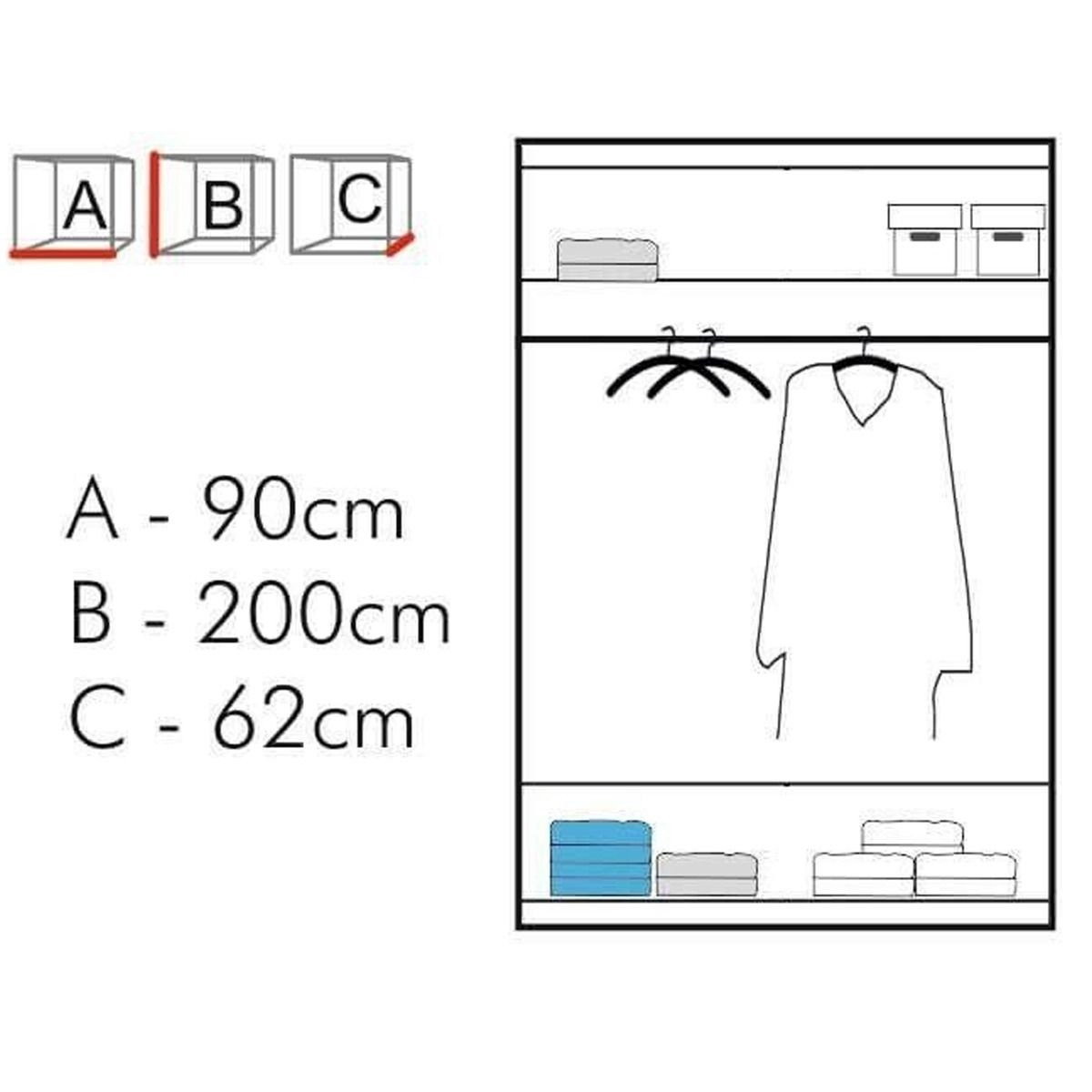 Sliding Wardrobe - CHICAGO II 2 Door Mirrored Wardrobe Grey - 90cm