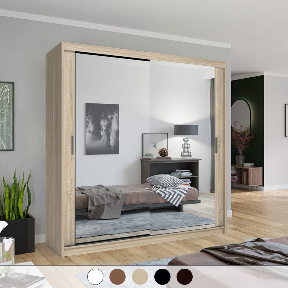 Sliding Wardrobe - CHICAGO II 2 Door Mirrored Wardrobe Oak - 120cm