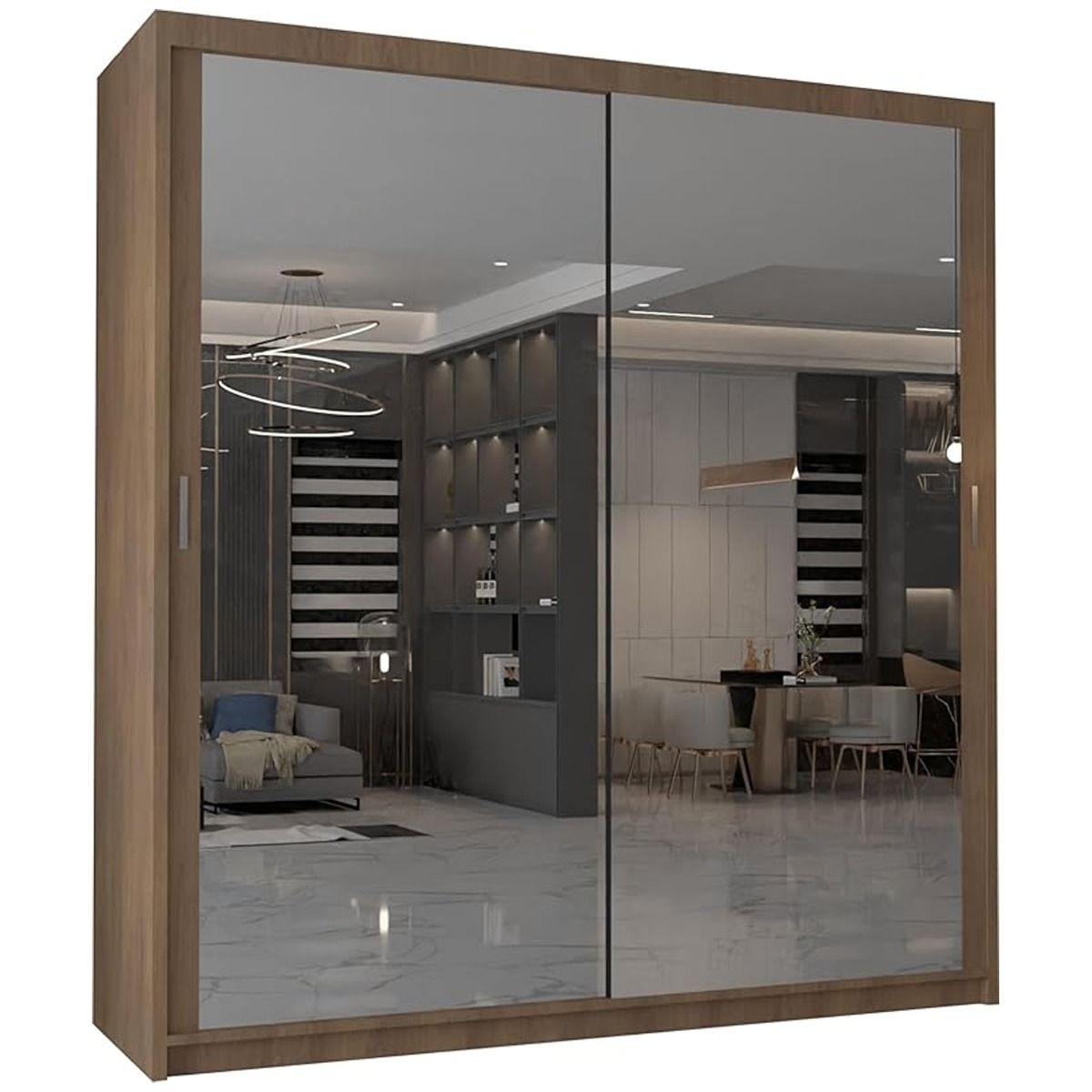 Sliding Wardrobe - CHICAGO II 2 Door Mirrored Wardrobe Walnut - 150cm
