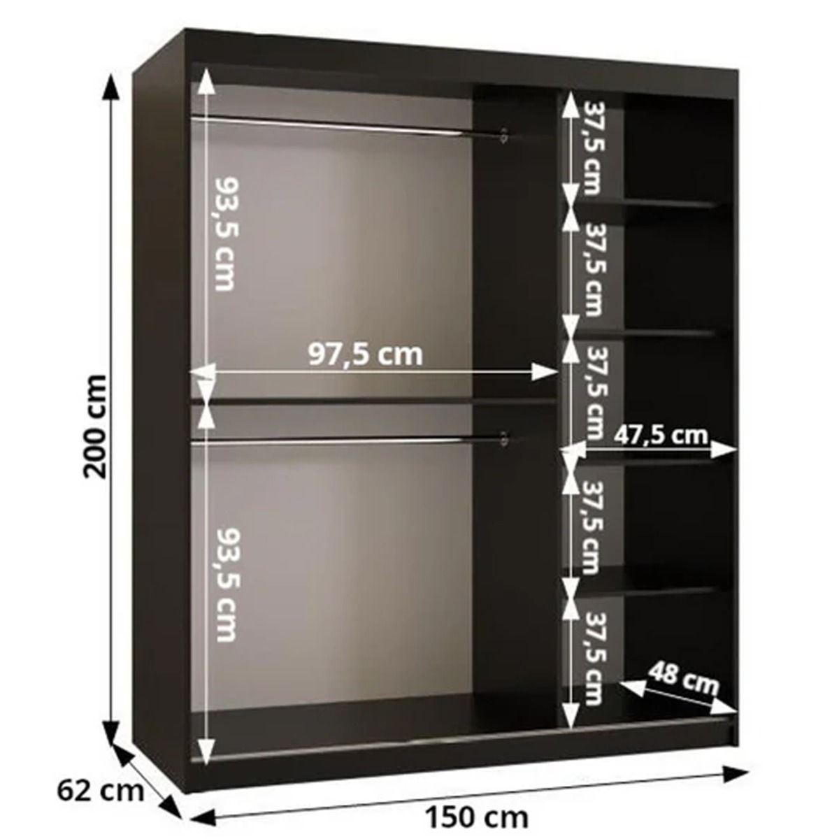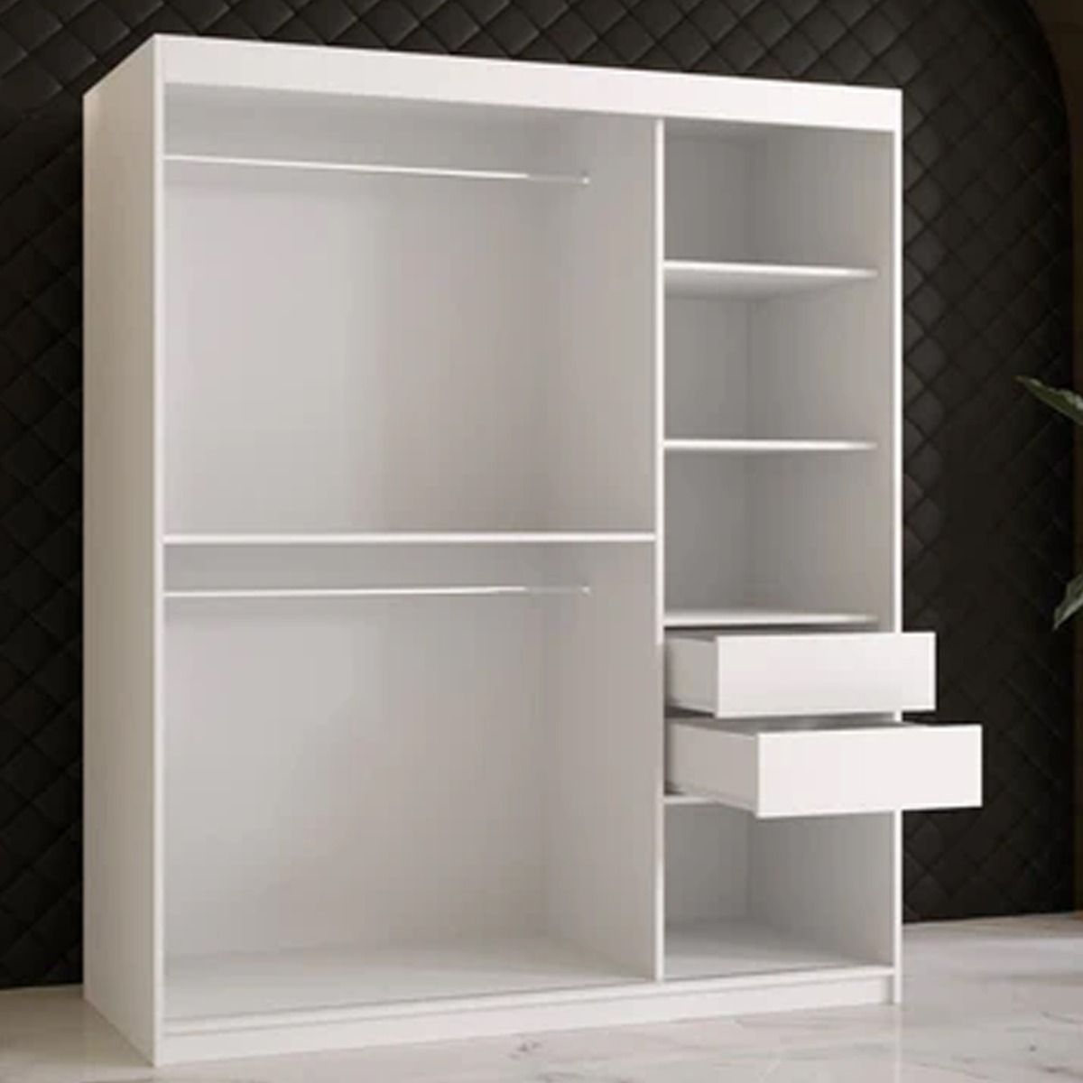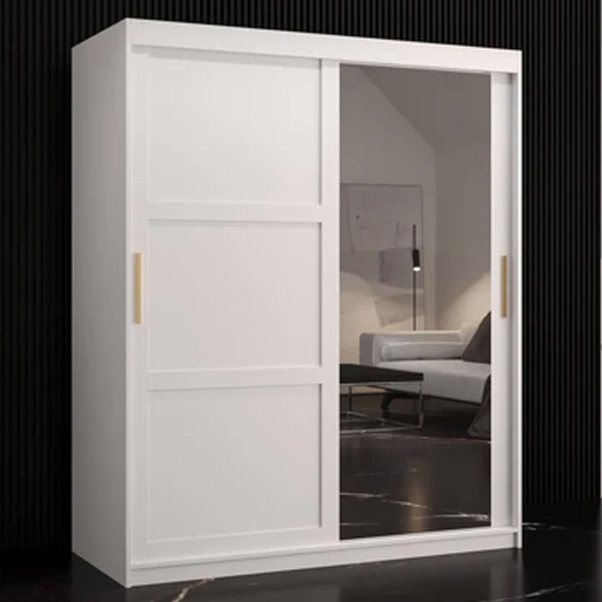 Sliding Wardrobe - CLIFFORD II 2 Door Mirrored Wardrobe White 150cm