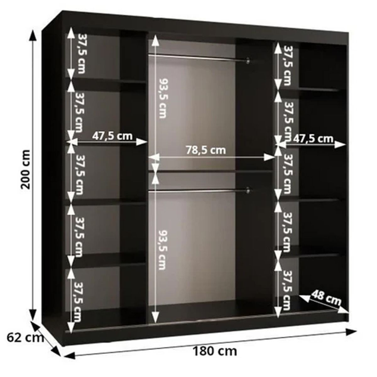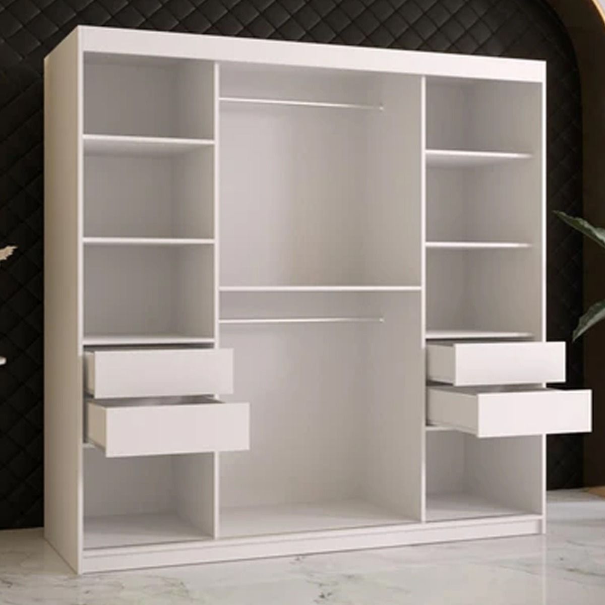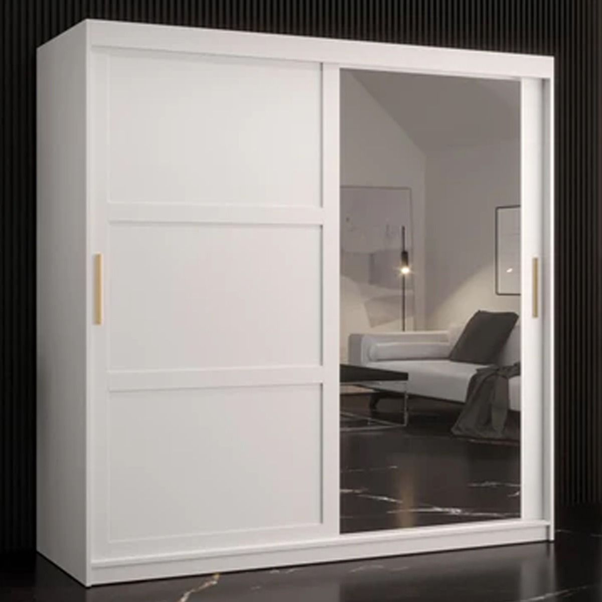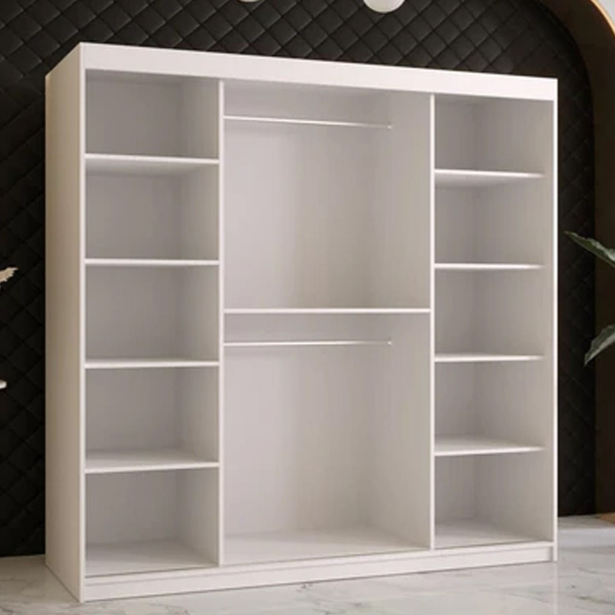 Sliding Wardrobe - CLIFFORD II 2 Door Mirrored Wardrobe White 180cm