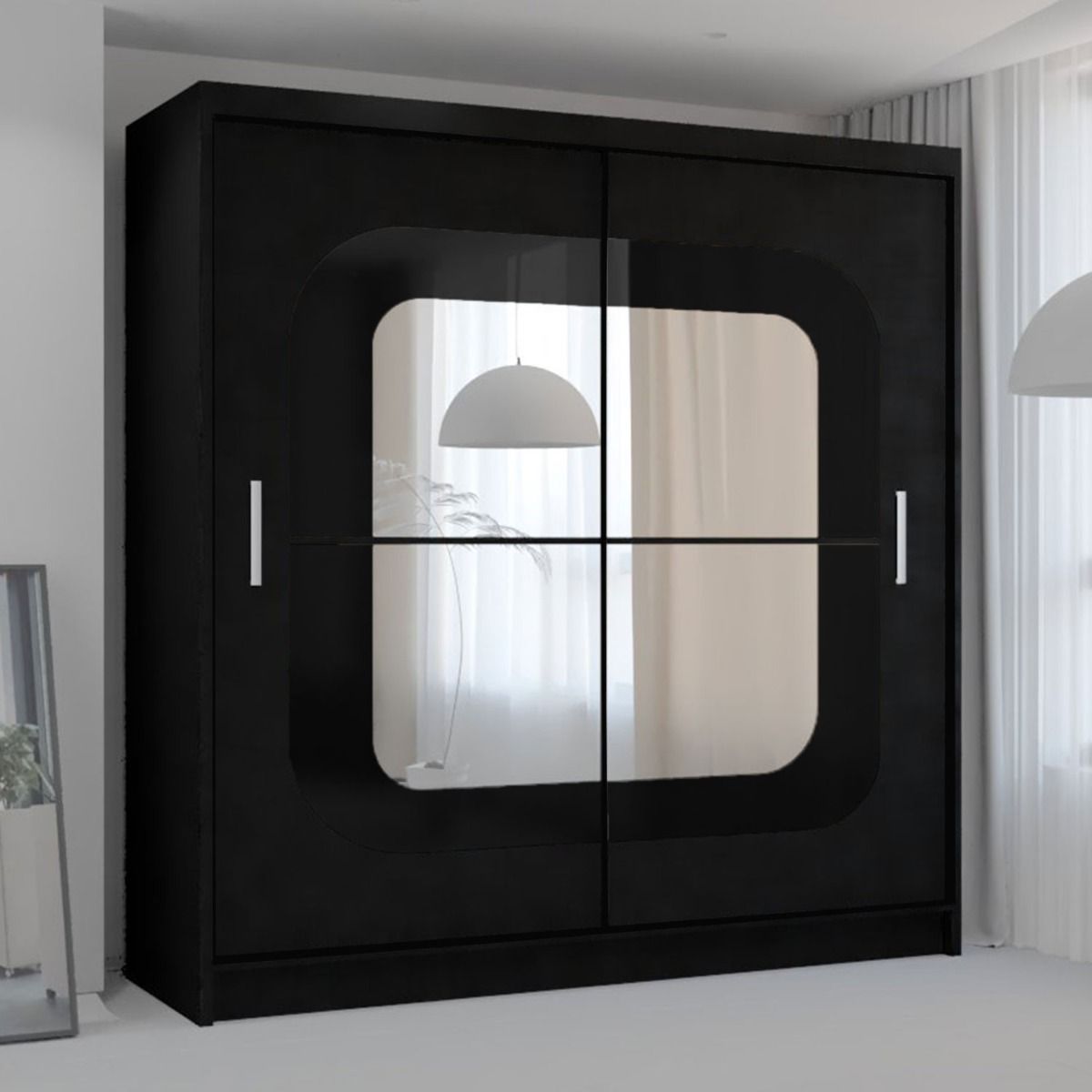 Sliding Wardrobe - COVINA 2 Door Mirrored Wardrobe Black - 150cm