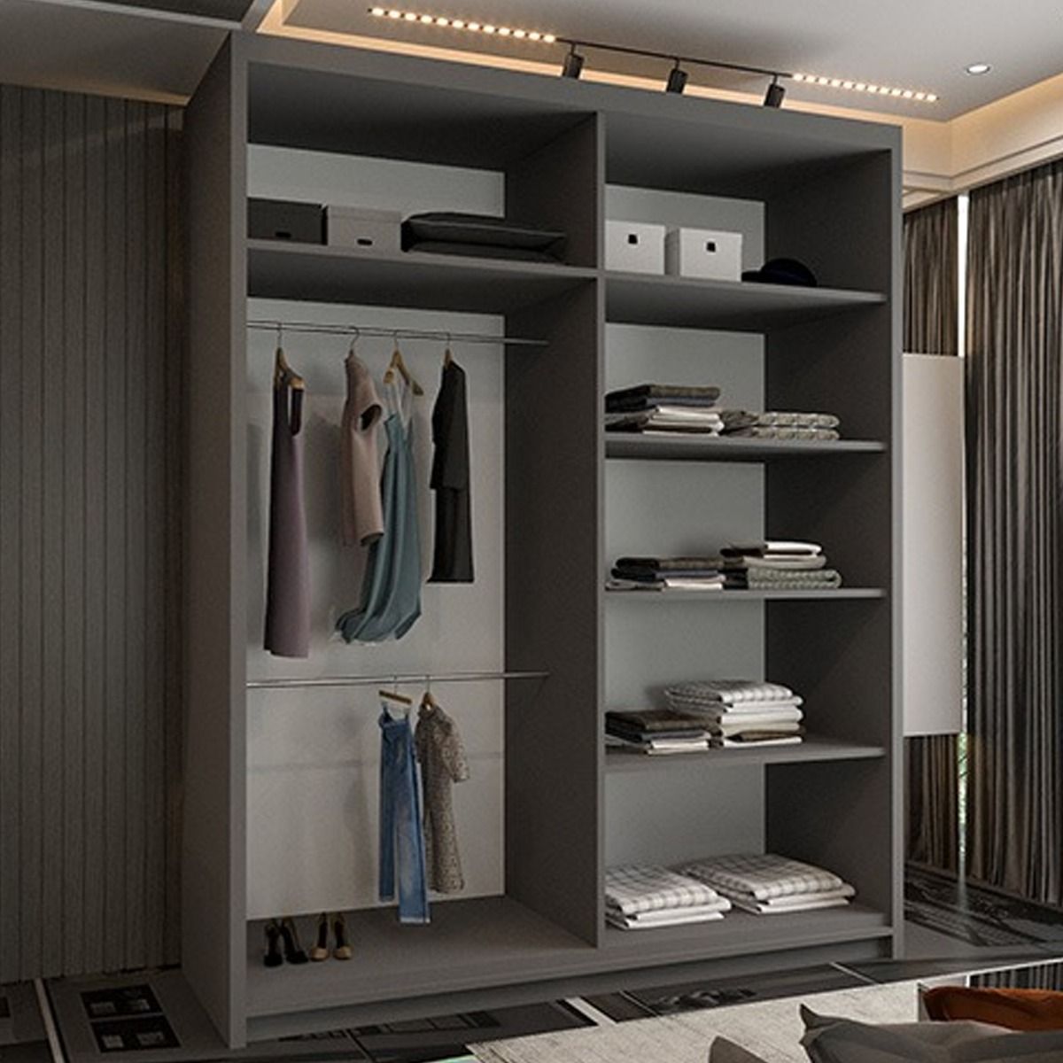 Sliding Wardrobe - COVINA 2 Door Mirrored Wardrobe Grey - 150cm