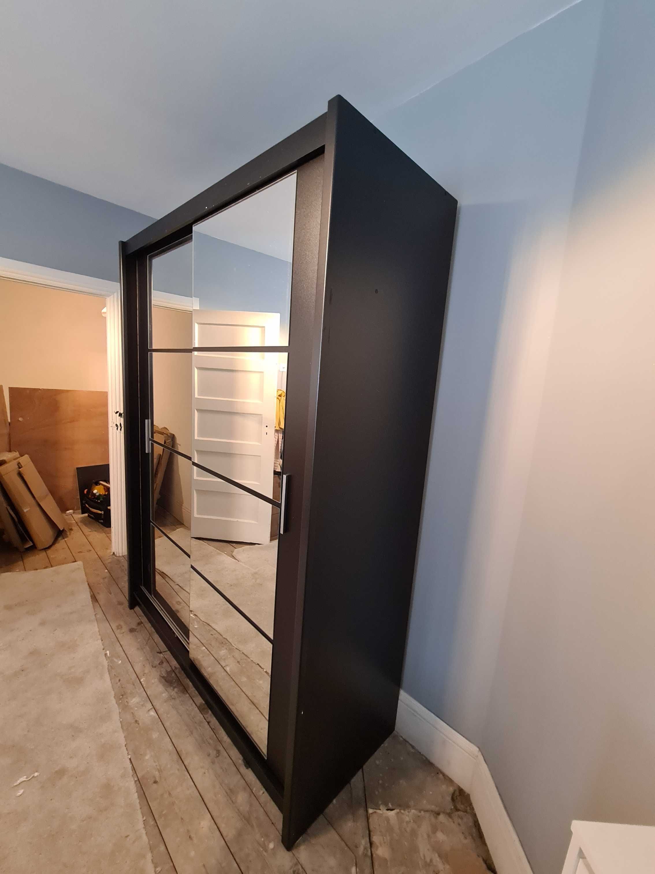 Sliding Wardrobe - DEXTER 2 Door Mirrored Wardrobe Black 160cm