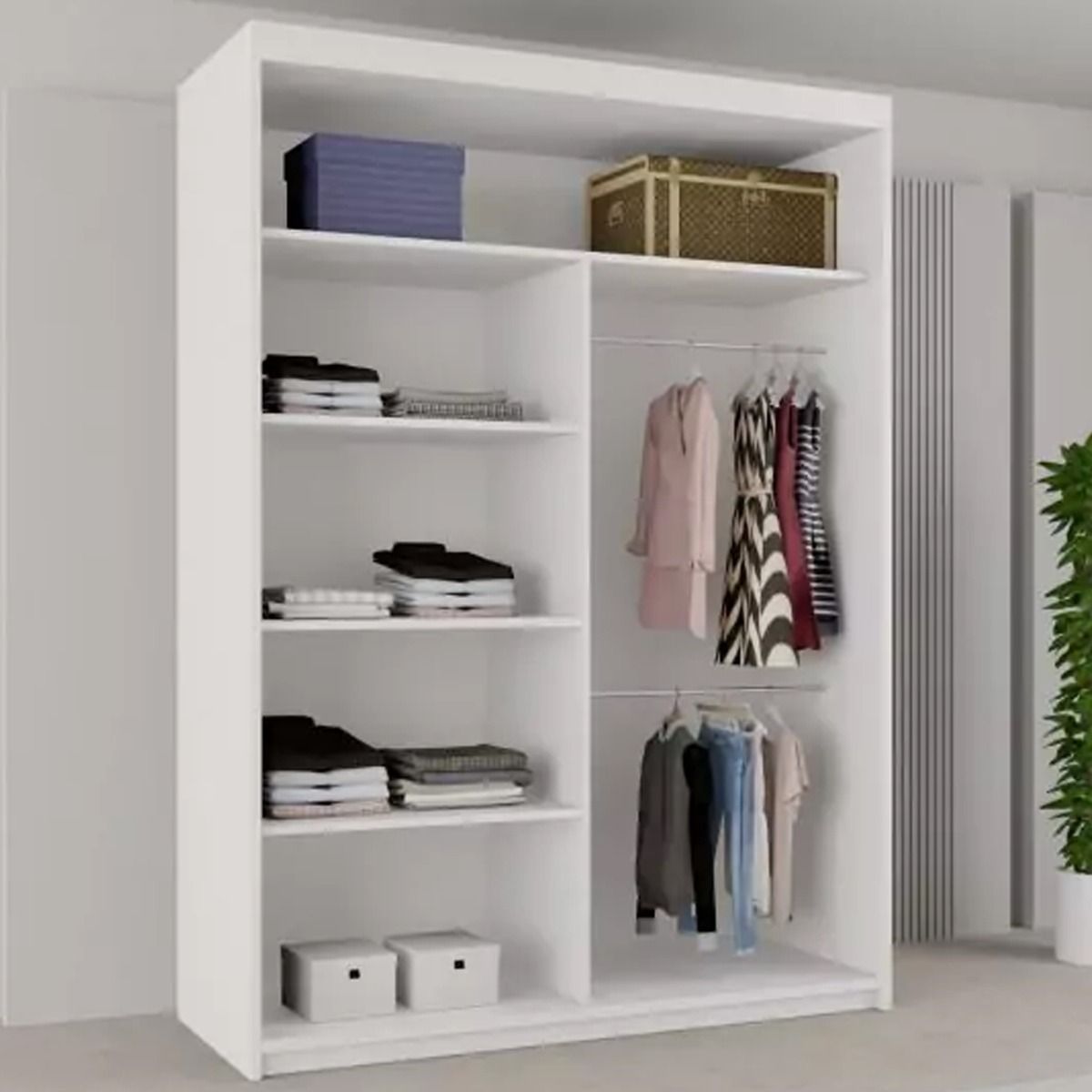 It features spacious shelving and hanging rails to keep your clothes and accessories well-organized. Available in elegant White, Black, Grey, and Walnut colours, and in 150cm, 180cm, and 203cm sizes, this exclusive Home Done wardrobe is built with premium materials for long-lasting quality and design appeal.