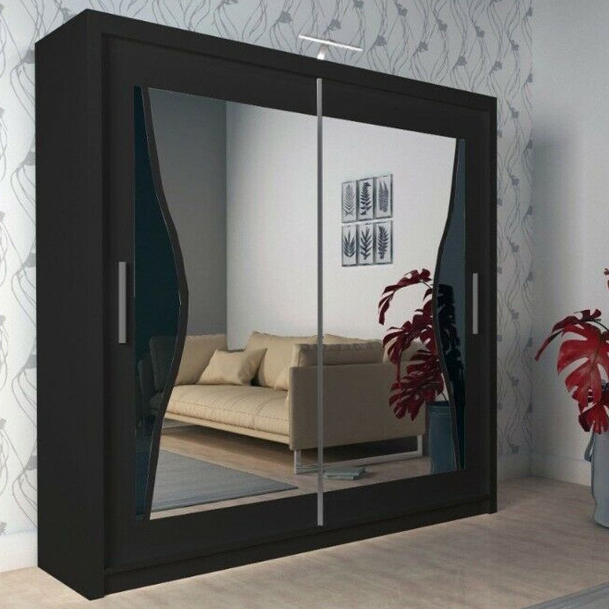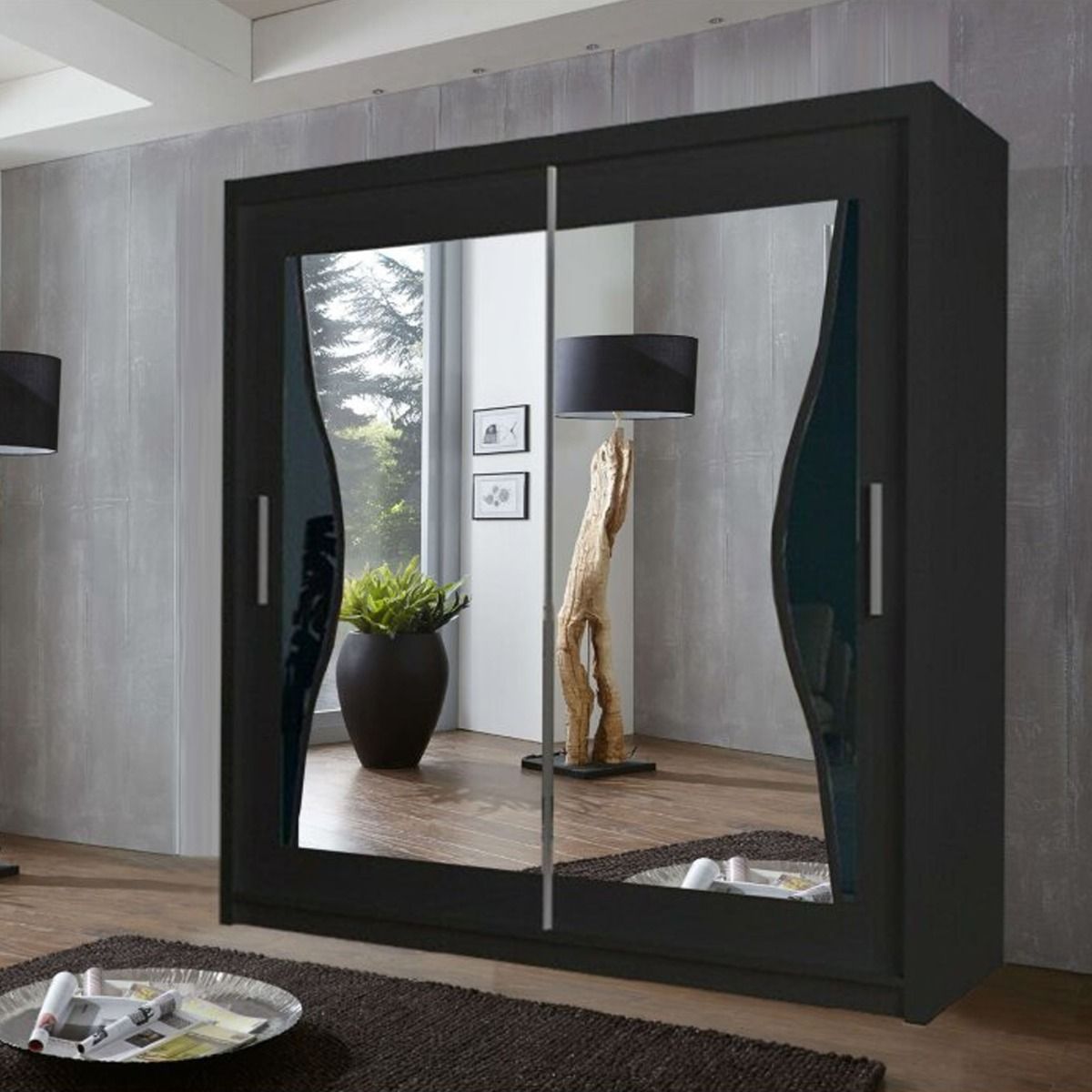 Sliding Wardrobe - HEFFNER 2 Door Mirrored 150cm Wardrobe - Black