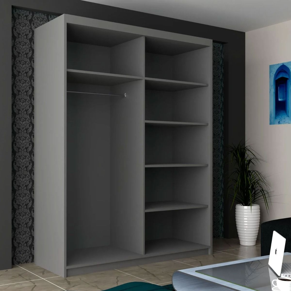 Sliding Wardrobe - INFINITE 2 Door Mirrored Wardrobe Grey - 180cm