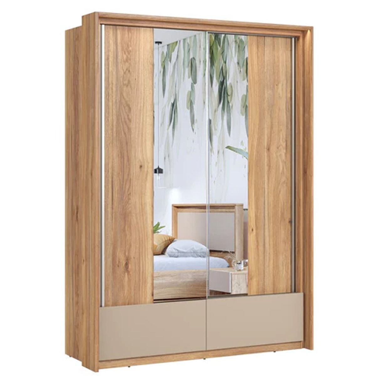 Sliding Wardrobe - INGERSOLL 2 Door Mirrored Wardrobe Oak Mauvella 159cm