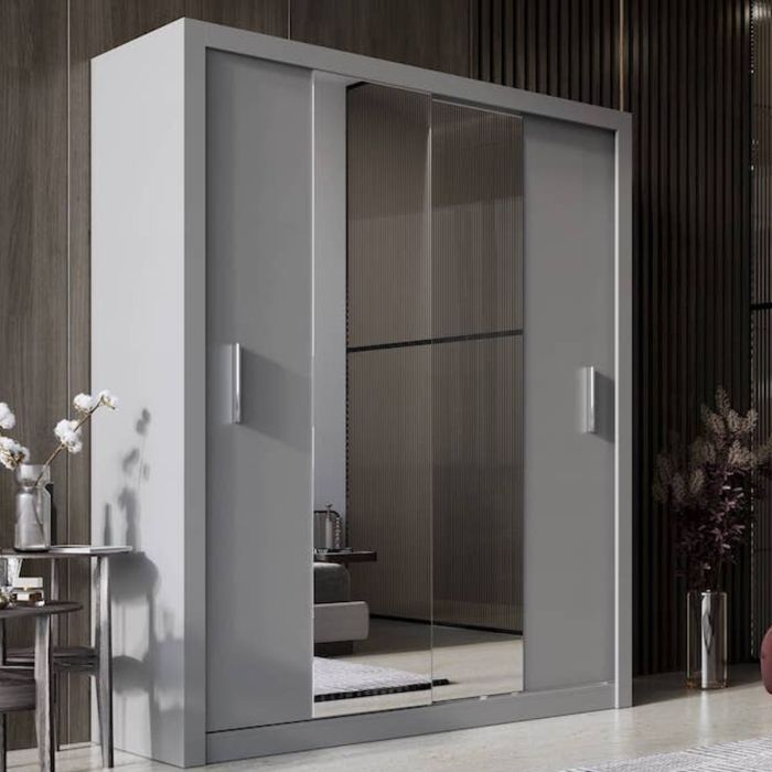 Sliding Wardrobe - INNISFAIL 2 Door Mirrored Wardrobe Grey Matt 180cm
