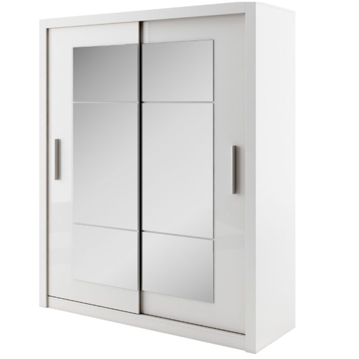 Sliding Wardrobe - INNISFAIL 2 Door Mirrored Wardrobe White 180cm