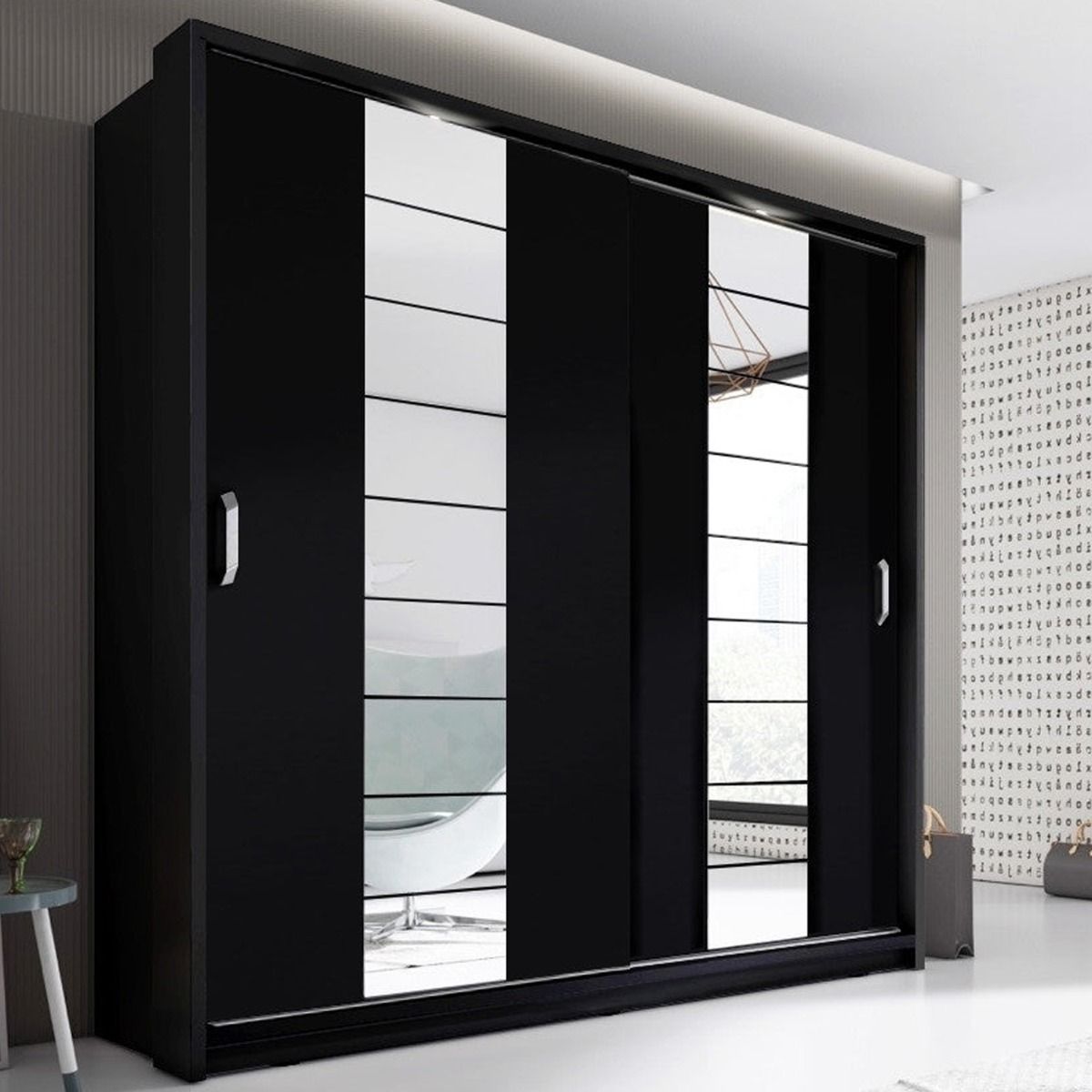 Sliding Wardrobe - IRVINE 2 Door Mirrored Wardrobe Black Matt 220cm