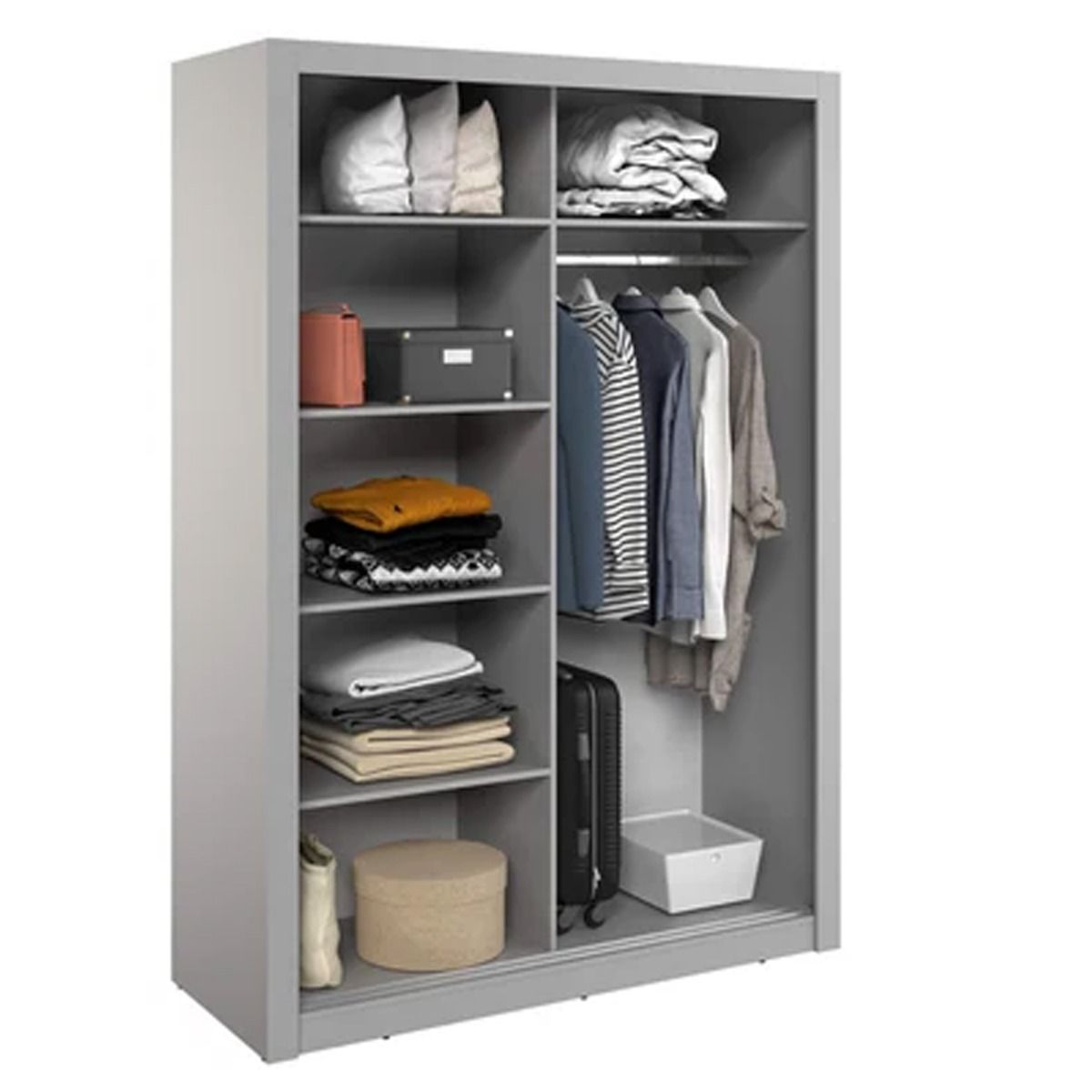 Sliding Wardrobe - IRVINE 2 Door Mirrored Wardrobe Grey 150cm
