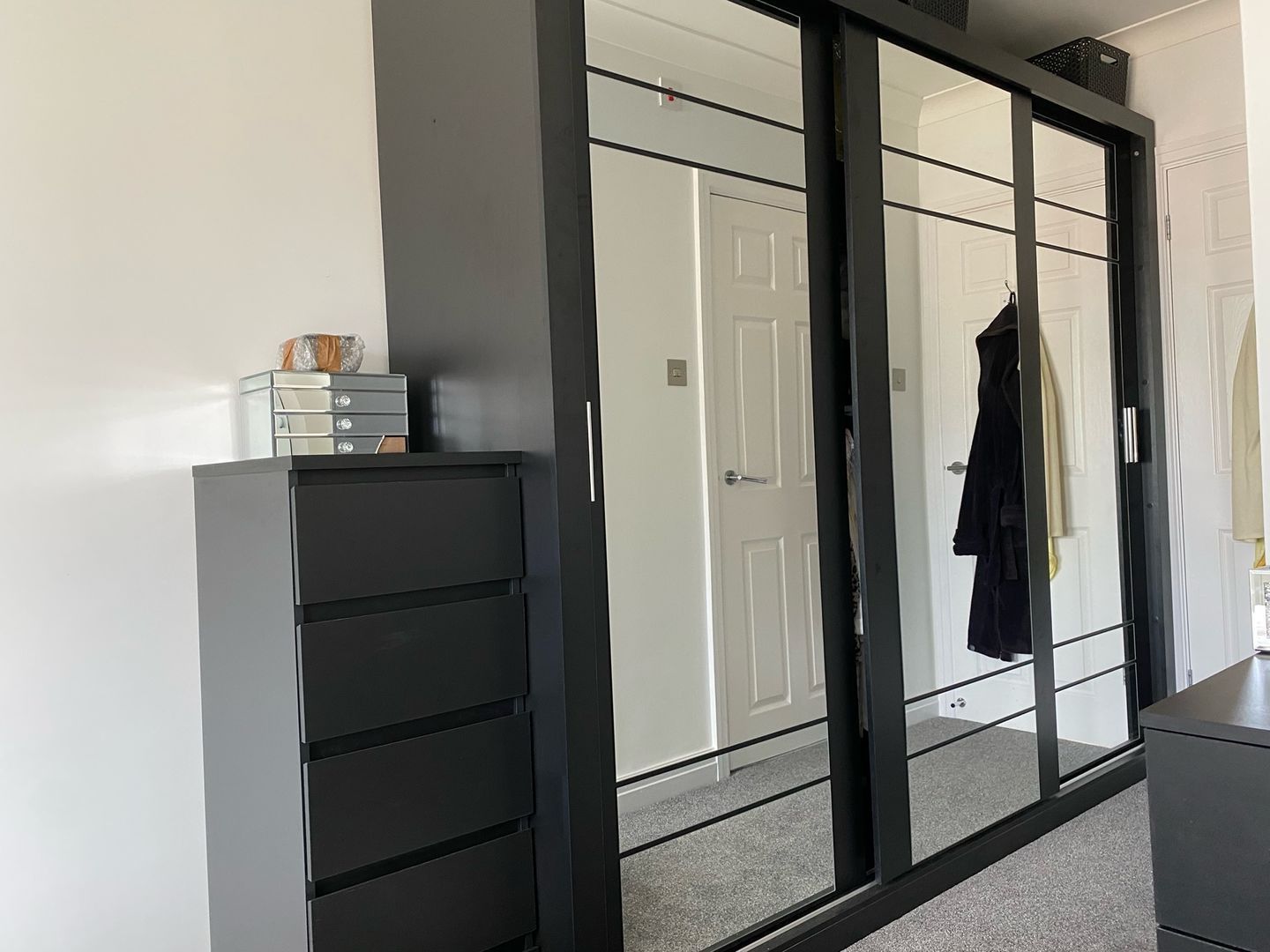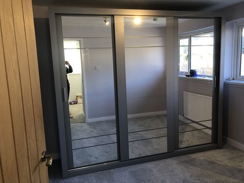 Sliding Wardrobe - IRVINE 3 Door Mirrored Wardrobe Black Matt 250cm