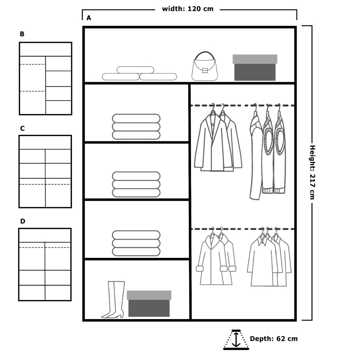 Sliding Wardrobe - KEYNES 2 Door Mirrored Wardrobe Black - 120cm