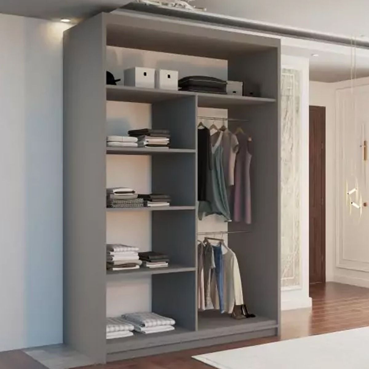 Sliding Wardrobe - KEYNES 2 Door Mirrored Wardrobe Grey - 120cm