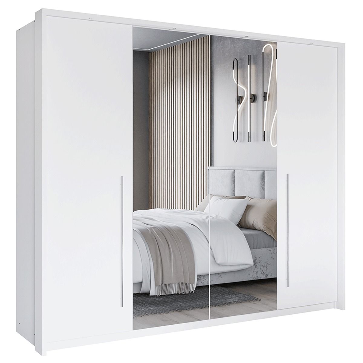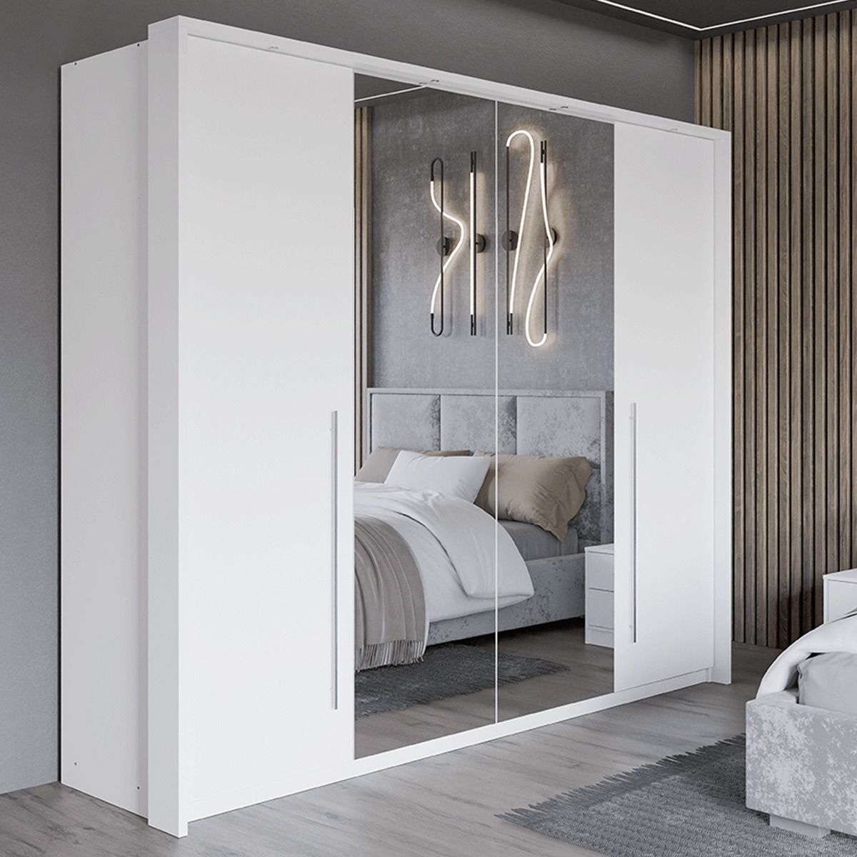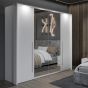 Sliding Wardrobe - KIRKLEES 2 Door Mirrored Wardrobe White 256cm
