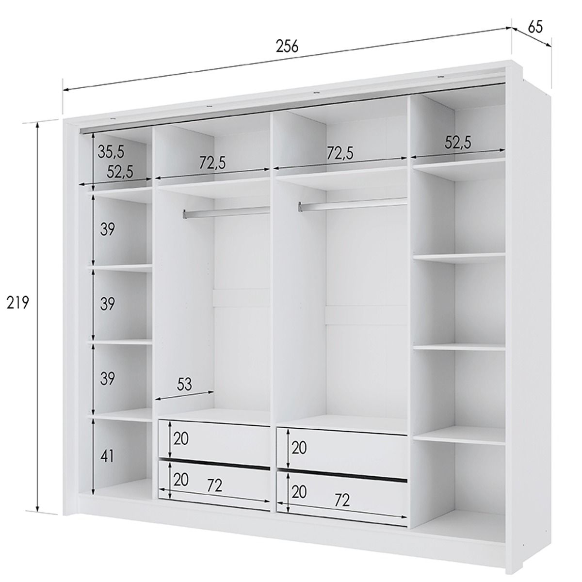 3) Please ensure that the desired location of your wardrobe has extra space on either side of at least 30 cm.