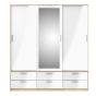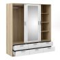 Sliding Wardrobe - LACOSTE 3 Door Mirrored Wardrobe Oak with White High Gloss 181.4cm