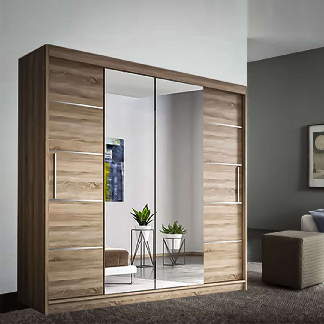 Sliding Wardrobe - LISBANE 2 Door Mirrored Wardrobe Oak - 120cm