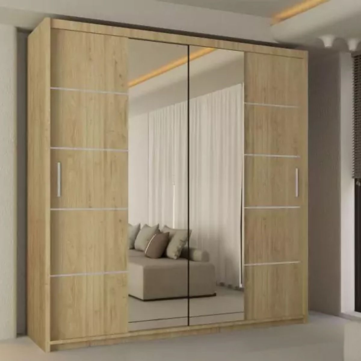 Sliding Wardrobe - LISBANE 2 Door Mirrored Wardrobe Oak - 203cm