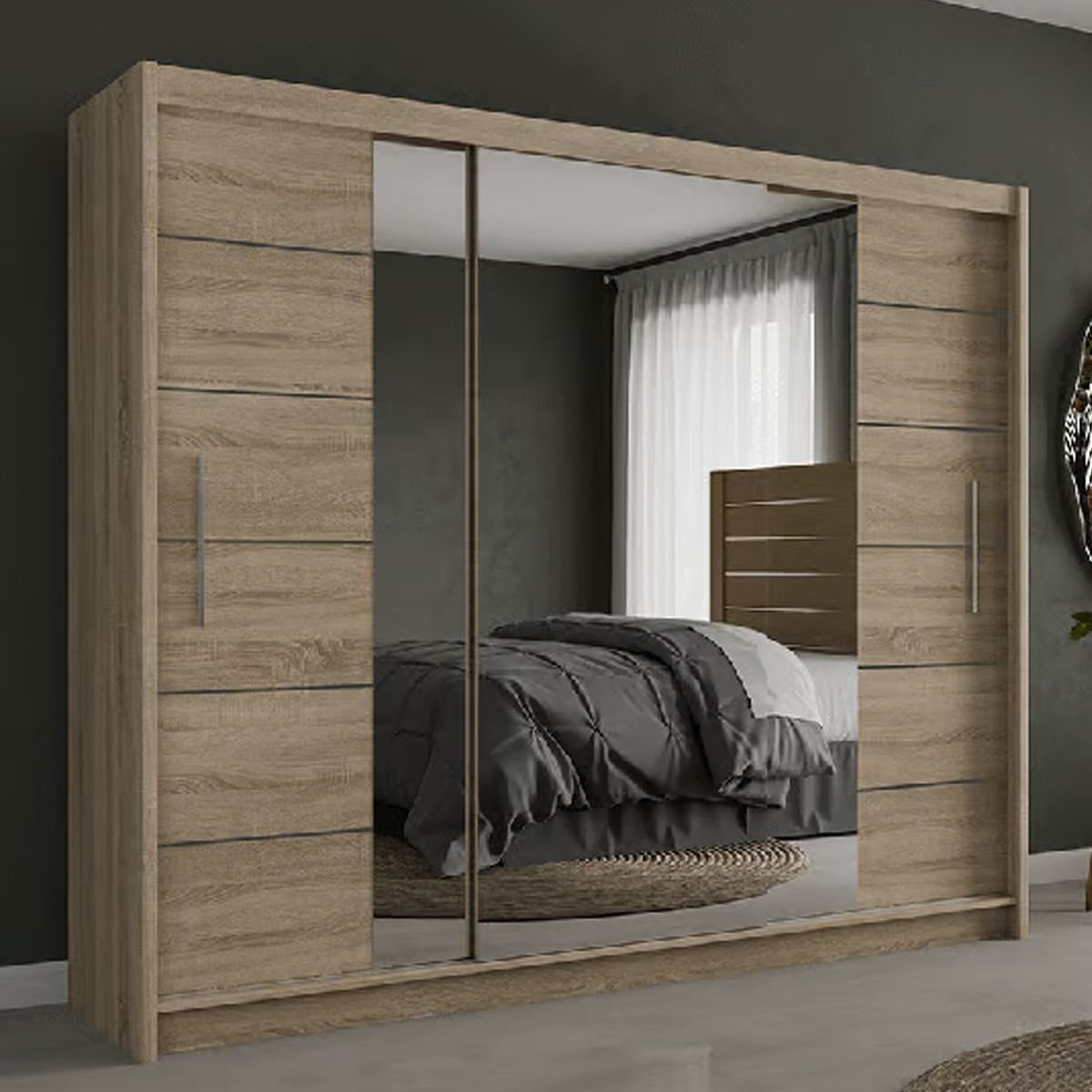 Sliding Wardrobe - LUZERN 3 Door Mirrored Wardrobe Oak Sonoma 250cm